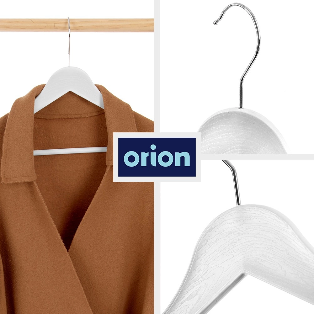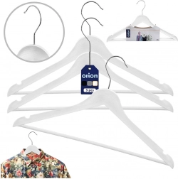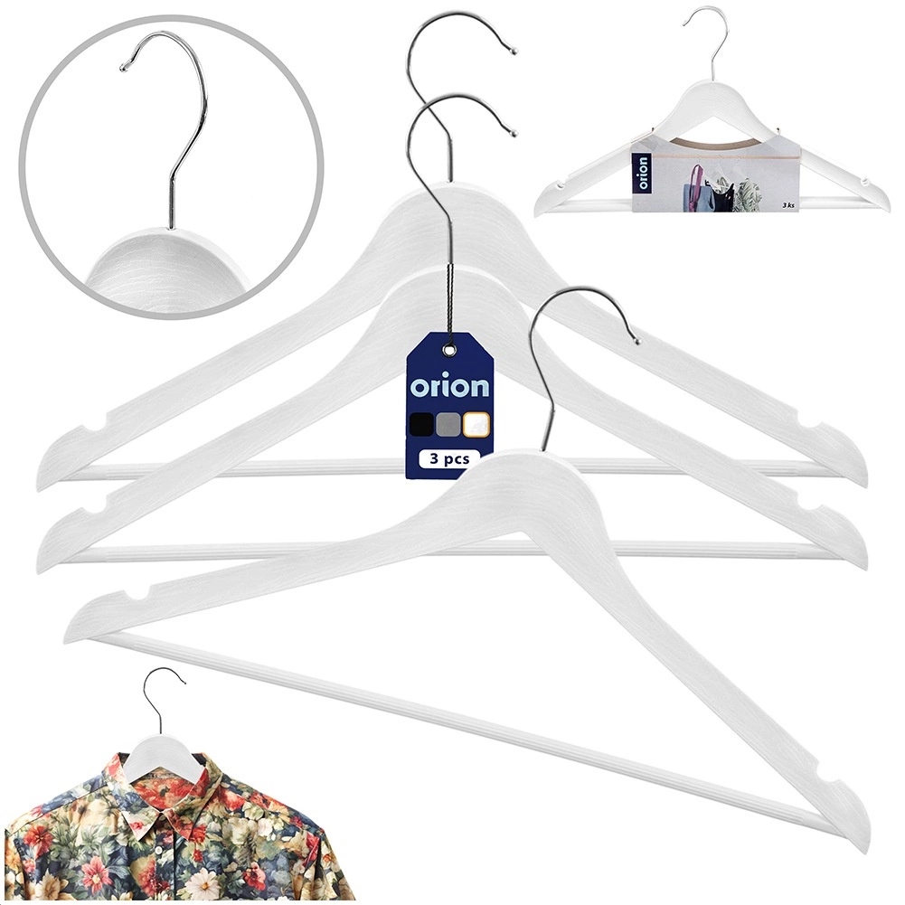Setul de trei umerașe universale în culoare albă ajută la menținerea ordinii și clarității în dulapul dvs. sau în magazinele de îmbrăcăminte. Suprafața cu imitație de lemn are un aspect stilat, fiind în același timp rezistentă și ușor de întreținut. Cârligul metalic rotativ facilitează agățarea în orice direcție.