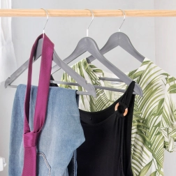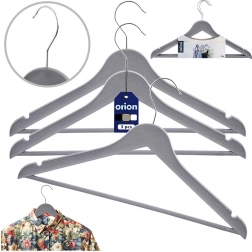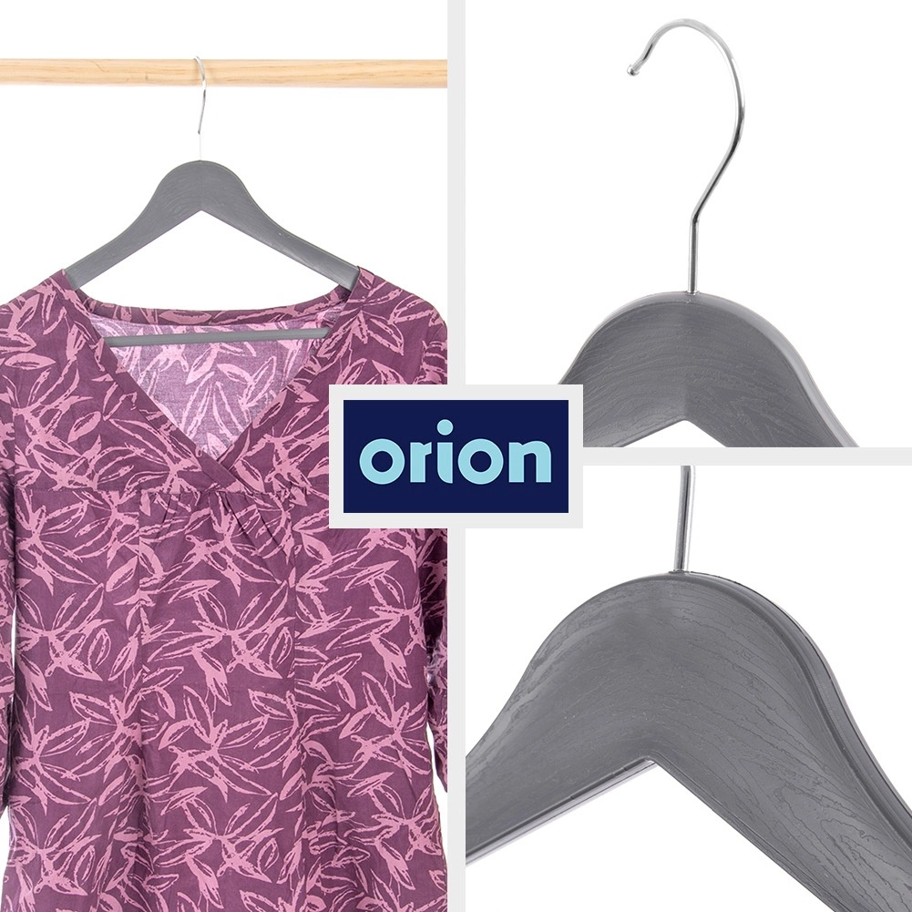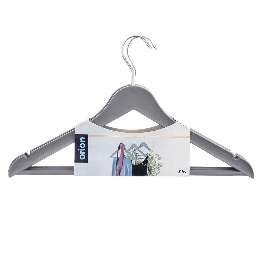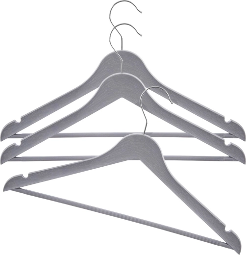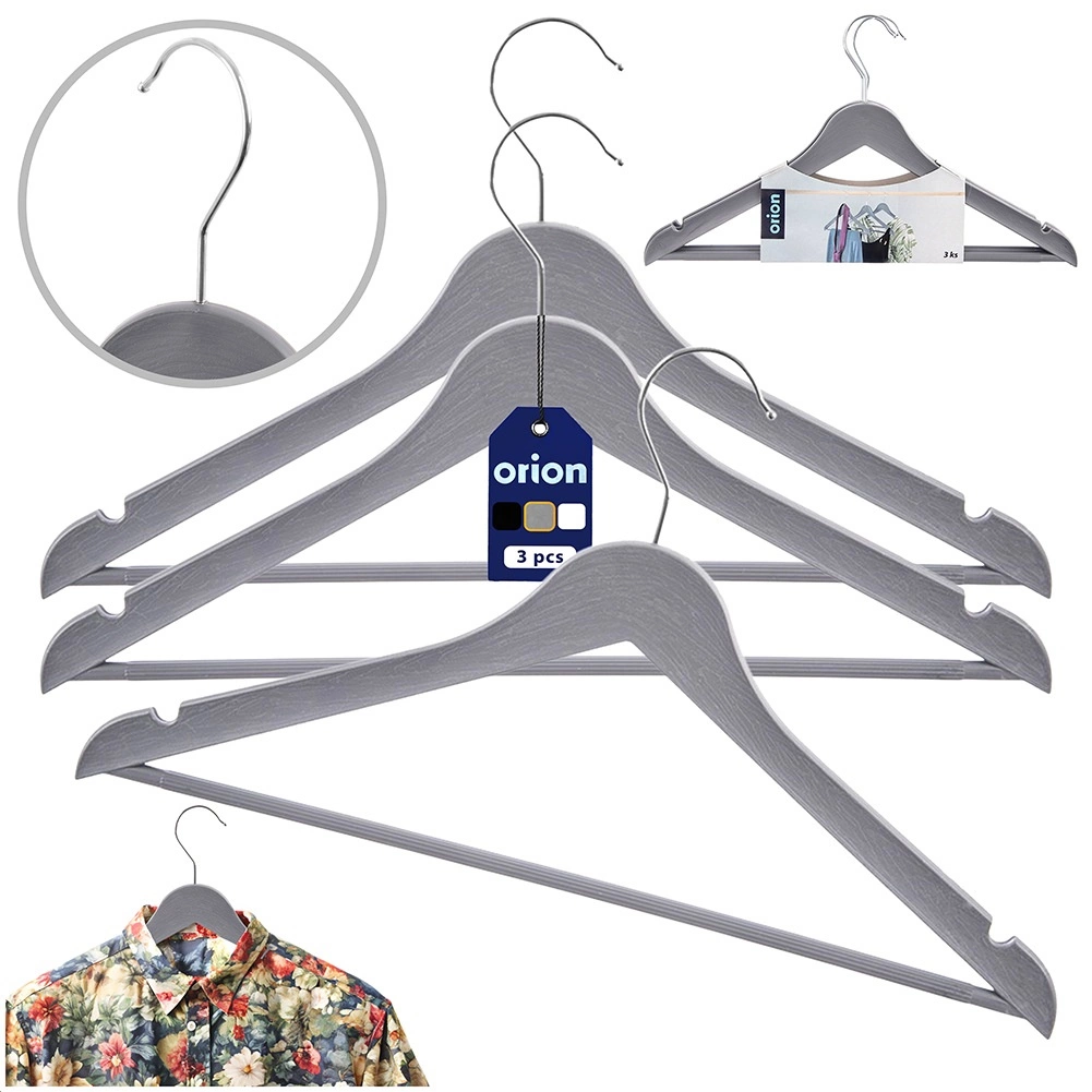 Setul de 3 umerașe universale, în nuanță gri modernă, te ajută să menții dulapul perfect organizat. Suprafața cu decor de lemn și cârligul metalic pivotant în culoare argintie asigură stil și funcționalitate într-un singur produs. Umerașele sunt potrivite pentru utilizarea zilnică acasă și în magazinele de îmbrăcăminte.