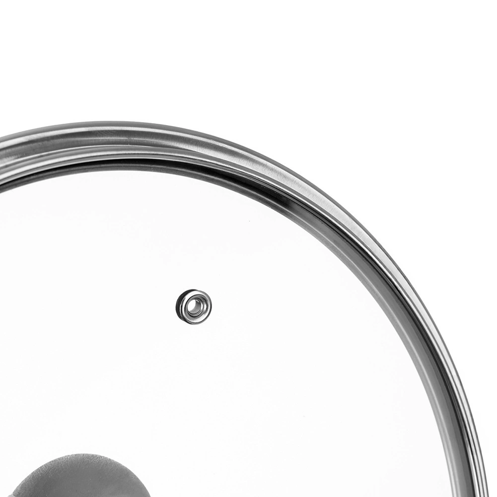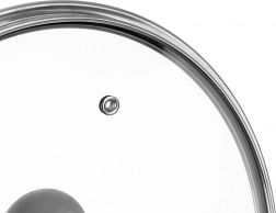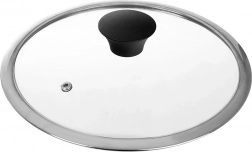 Capacul practic din sticlă transparentă termorezistentă permite controlul gătirii fără a-l ridica. Marginea din inox rezistentă și buza înaltă asigură o etanșare fermă pe marginea vasului, în timp ce mânerul ergonomic din plastic rezistent facilitează manipularea. Datorită ventilării aburului, gătirea este mai sigură și mai uniformă.