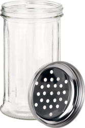 Recipient universal din sticlă pentru condimente, cu capac metalic înșurubabil și perforat, asigură dozare precisă fără cocoloașe și fără a vărsa o cantitate mai mare decât este necesar. Datorită corpului transparent, vedeți mereu nivelul conținutului, astfel încât aveți condimentele sub control.
