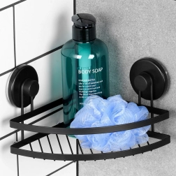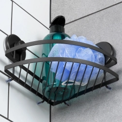 Această etajeră de colț pentru duș îmbină designul minimalist cu funcționalitatea ridicată. Metalul vopsit în câmp electrostatic, în negru mat, este durabil, se curăță ușor și se potrivește perfect băilor moderne și clasice. Datorită celor două ventuze mari, se fixează sigur pe suprafețe netede, precum faianța sau sticla – fără găurire și fără deteriorarea pereților.