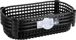 Coșurile tip grilaj asigură circulația aerului și vizibilitate asupra conținutului. Material ușor, dar solid, în culoare neagră, ușor de curățat.