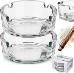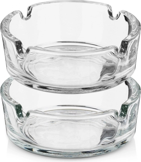 Setul de 2 scrumiere rotunde din sticlă îmbină un aspect atemporal cu funcționalitate ridicată. Sticla transparentă, groasă, asigură stabilitate și rezistență la căldură și la utilizarea zilnică. Datorită stilului universal, se potrivesc perfect în orice interior sau spațiu exterior.