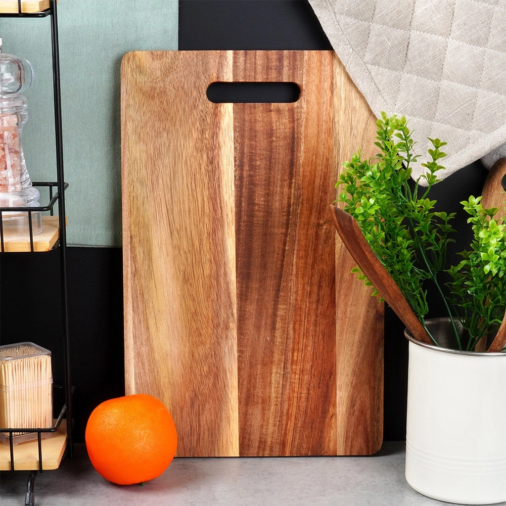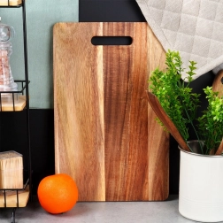 Descoperiți un tocător de calitate din lemn natural de salcâm, care impresionează prin fibra frumoasă și rezistența ridicată. Datorită construcției solide și grosimii de 1,5 cm, oferă o suprafață stabilă și blândă pentru tăiere, care protejează blatul de bucătărie de deteriorare. Suprafața se întreține ușor, se usucă rapid și nu absoarbe mirosurile.