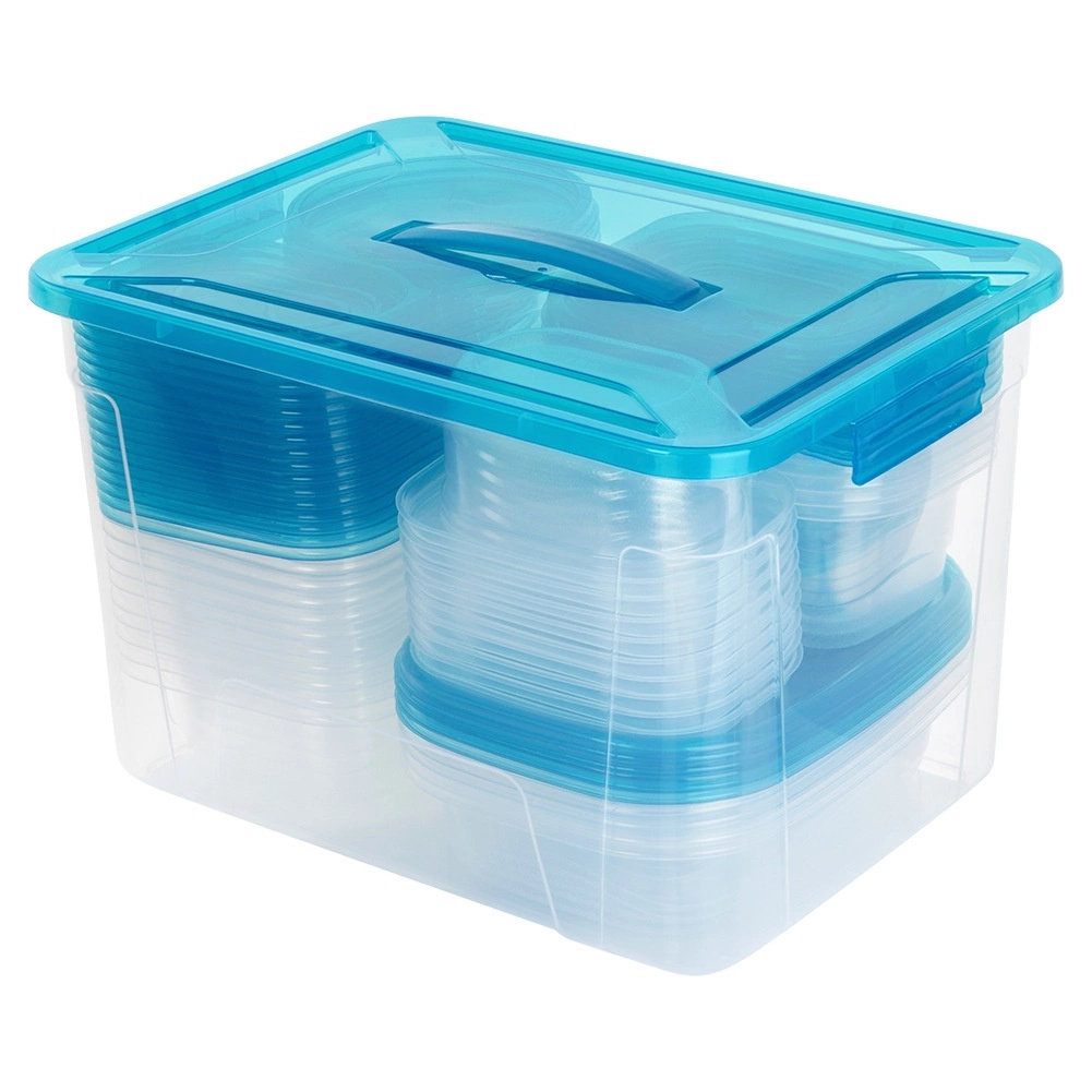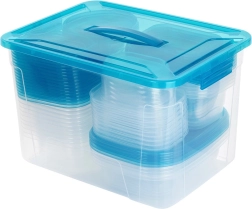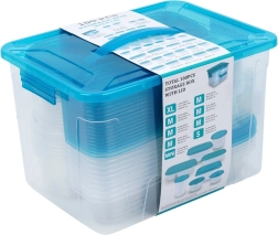Recipiente ideale pentru organizarea cămării și a frigiderului – pentru alimente vrac, mezeluri, salate, fructe, resturi de mâncare sau snacks-uri. Întregul set poate fi depozitat comod în cutia mare portabilă cu mâner, astfel încât aveți totul într-un singur loc.