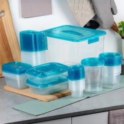 Acest set versatil de 50 de piese include un mix de recipiente rotunde și dreptunghiulare pentru depozitarea clar organizată a ingredientelor, preparatelor gătite și gustărilor. Pereții transparenți oferă o vizibilitate clară a conținutului, iar capacele robuste asigură o etanșare fiabilă împotriva scăpării mirosurilor și a uscării.
