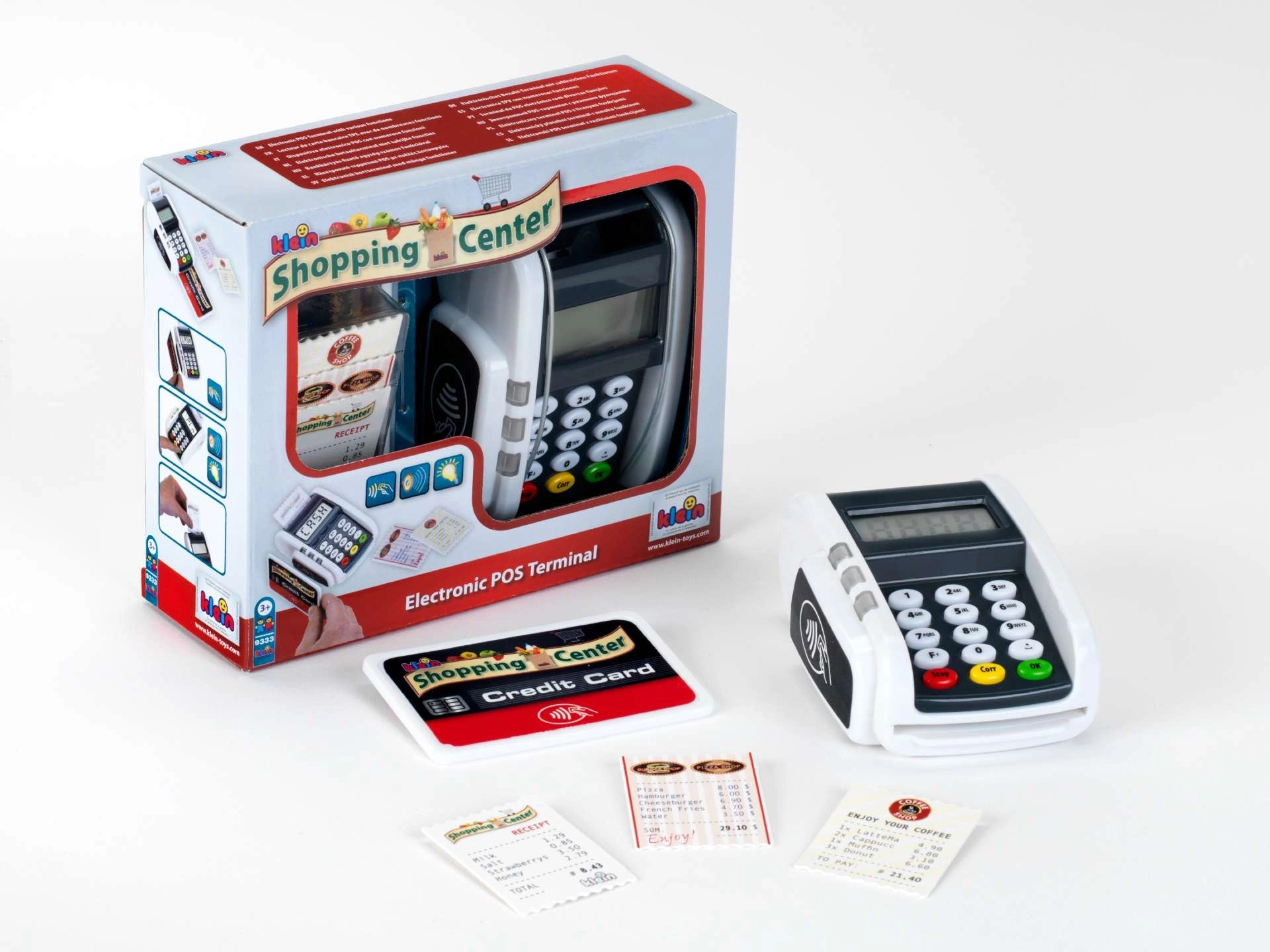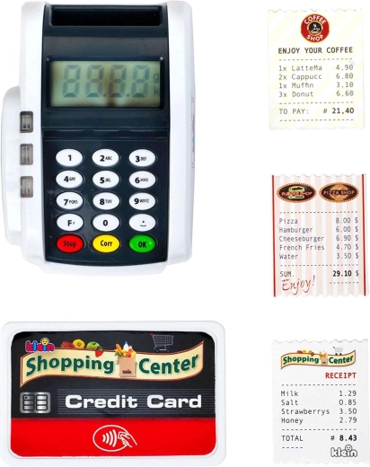 Terminalul de plată realist pentru copii de la KLEIN aduce distracția de la casa de marcat. Oferă butoane funcționale, cititor pentru plăți contactless, efecte luminoase și sonore și le permite copiilor să își dezvolte imaginația jucându-se de-a magazinul sau restaurantul.