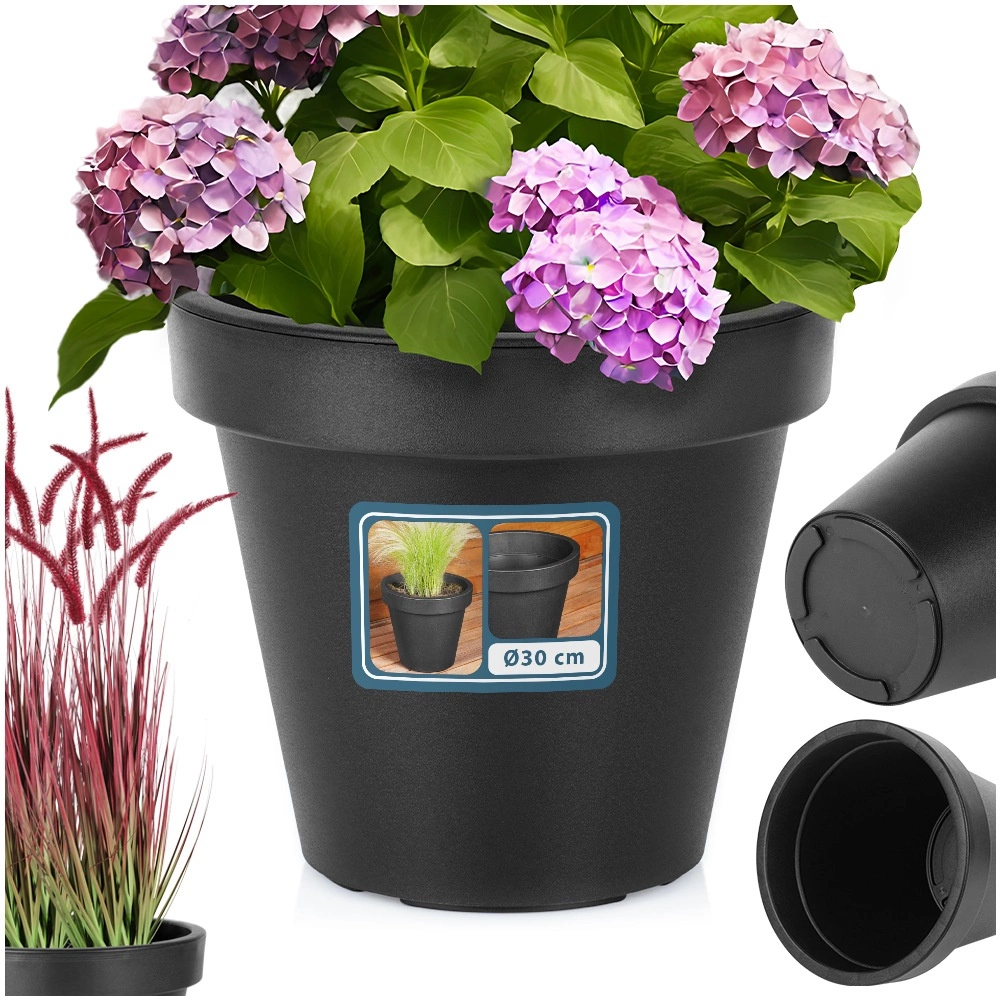 Acest ghiveci din plastic negru, cu formă elegantă și clasică, se evidențiază la ușa de la intrare, pe palier sau pe balcon. Datorită materialului rezistent, este ușor de întreținut și poate fi simplu clătit cu furtunul de grădină.