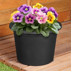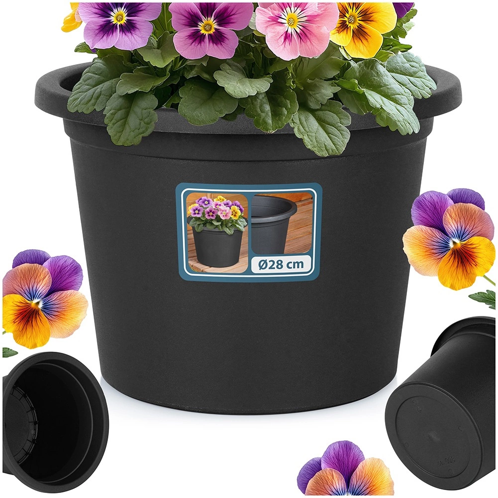 Ghiveciul negru rotund, cu diametrul de 27,5 cm și înălțimea de 19,5 cm, este o alegere ideală pentru utilizare în aer liber pe tot parcursul anului. Oferă spațiu suficient pentru creșterea plantelor, iar datorită marginii solide și pereților ușor conici are un aspect elegant și stabil. Potrivit ca ghiveci de sine stătător sau mască decorativă pentru recipiente introduse.