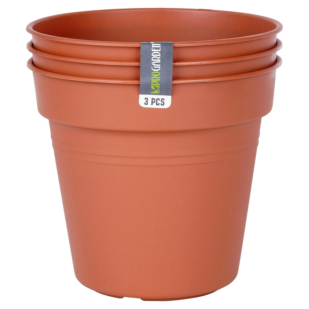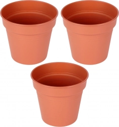 Cu acest set de trei ghivece îți expui ușor ierburile și florile preferate, atât în interior, cât și în exterior. Designul rotund atemporal, în nuanță cărămizie, se potrivește oricărui stil și evidențiază frumusețea naturală a plantelor. Materialul este ușor, dar rezistent și ușor de curățat.