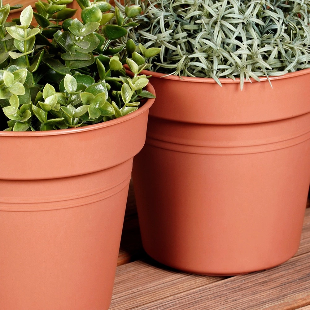 Forma rotundă clasică și nuanța cărămizie se potrivesc atât stilului modern, cât și celui rustic. Excelente pentru ierburi pe pervazul din bucătărie, flori de sezon pe balcon și verdeață pe terasă.