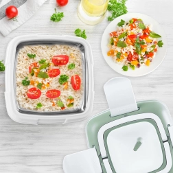 Spațiu suficient pentru felul principal și garnitură. Excelent pentru transportul prânzului la serviciu, școală sau în călătorii.