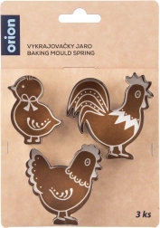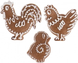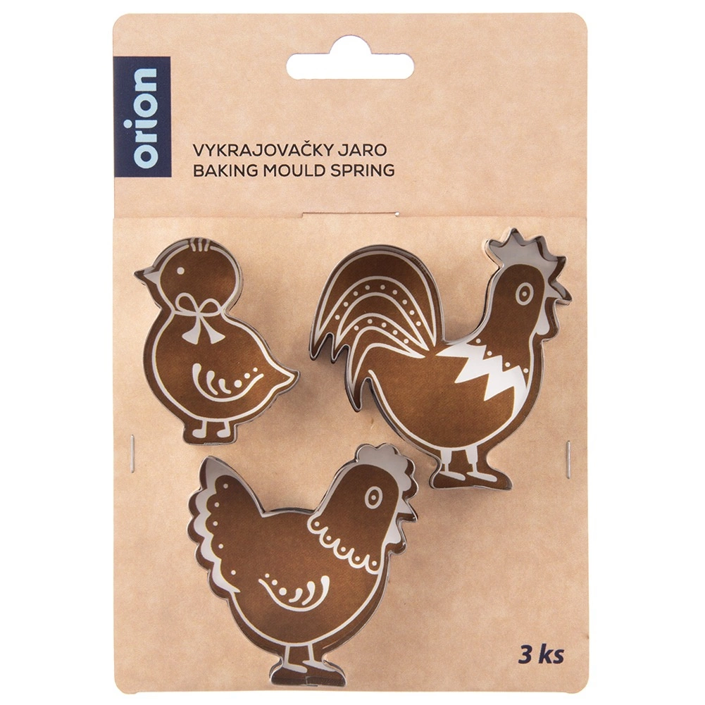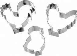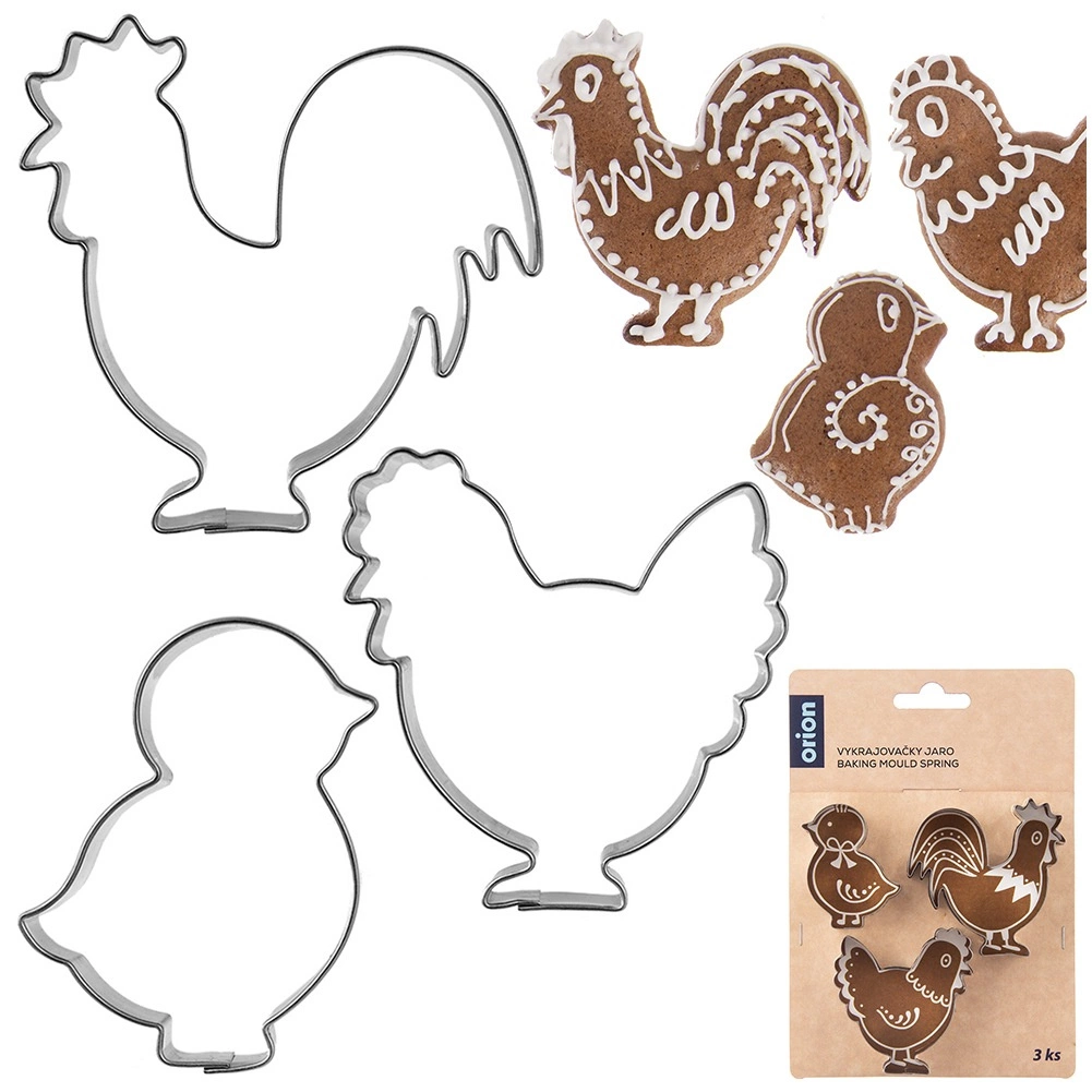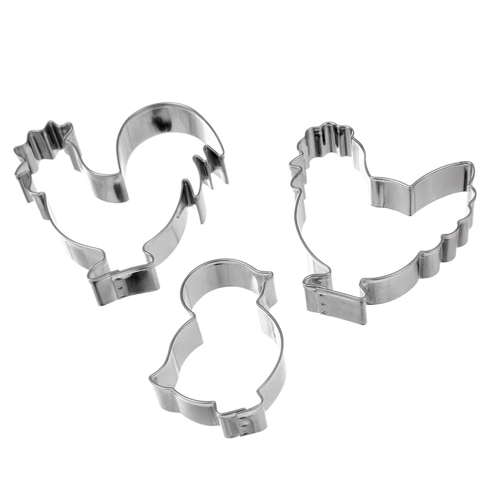 Descoperiți setul creativ de 3 forme de decupat, cu ajutorul căruia veți obține cu ușurință biscuiți, turtă dulce și decorațiuni de cofetărie în formă de cocoș, găină și pui. Oțelul inoxidabil de calitate asigură durabilitate îndelungată, tăieturi curate și întreținere ușoară – după coacere, pur și simplu le puneți în mașina de spălat vase.