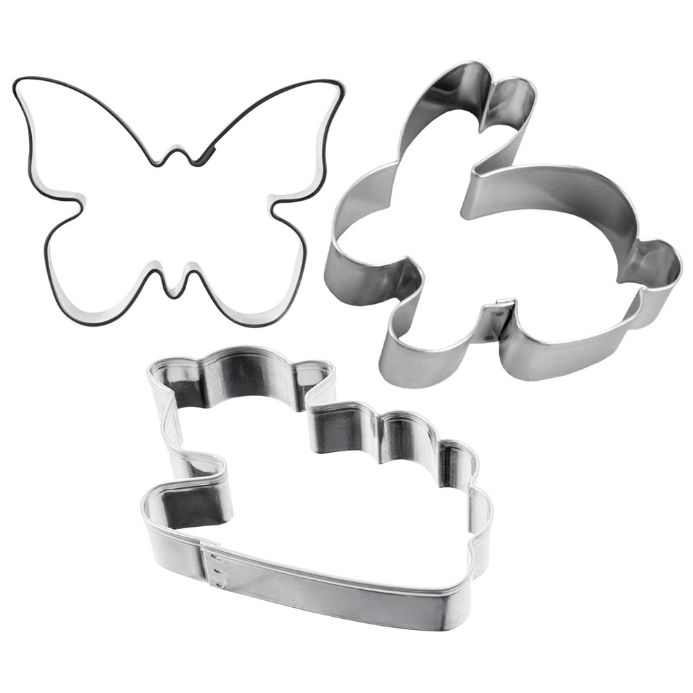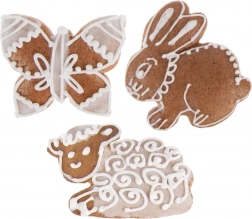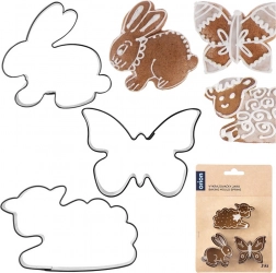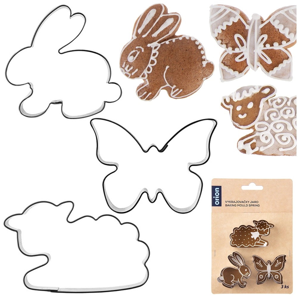 Dimensiuni: oiță 7 × 4 cm, iepuraș 5 × 5,2 cm, fluture 5 × 4,3 cm. Întreținere simplă datorită posibilității de spălare în mașina de spălat vase. Prelucrarea de calitate conform standardelor europene garantează o durată de viață îndelungată și rezultate fiabile la fiecare coacere.