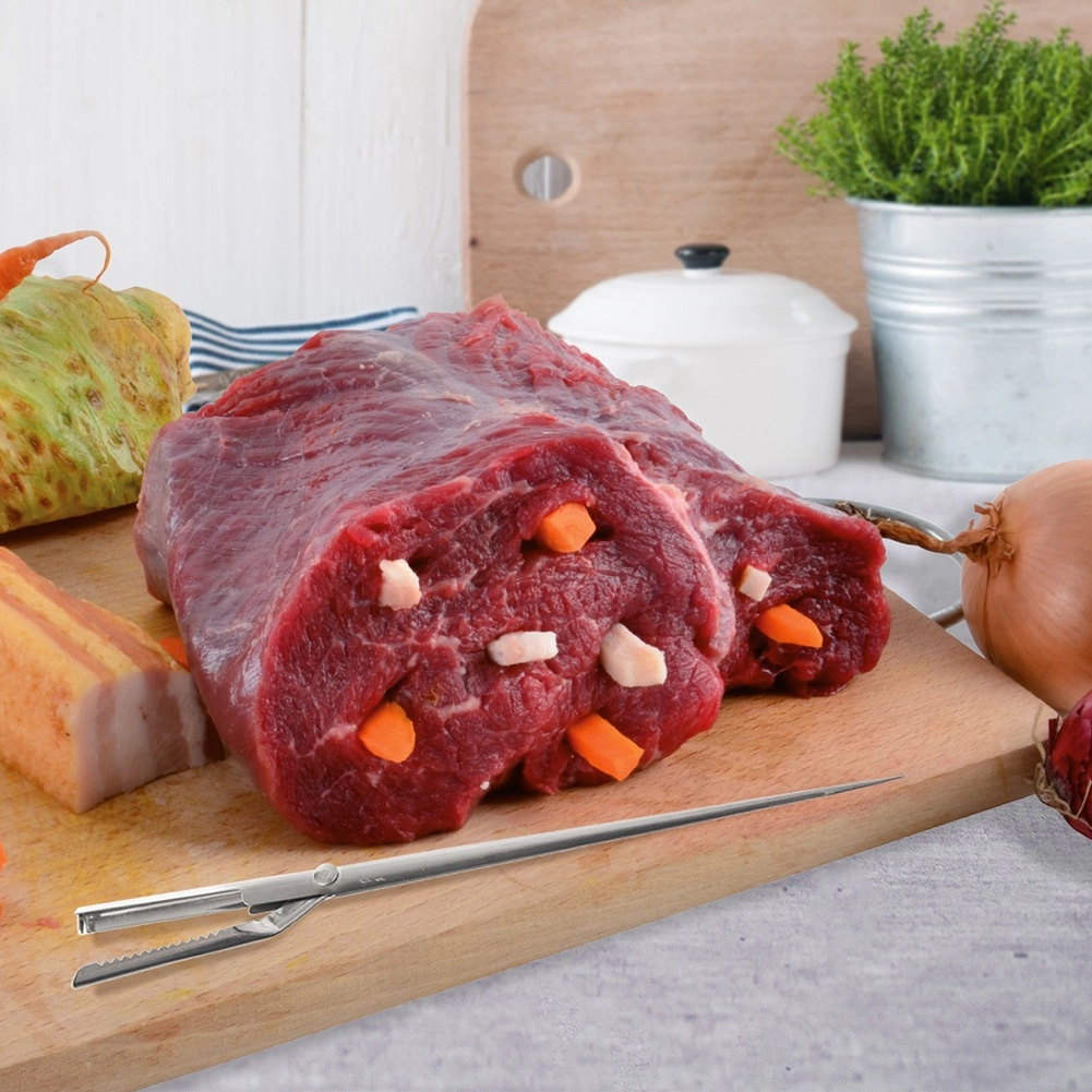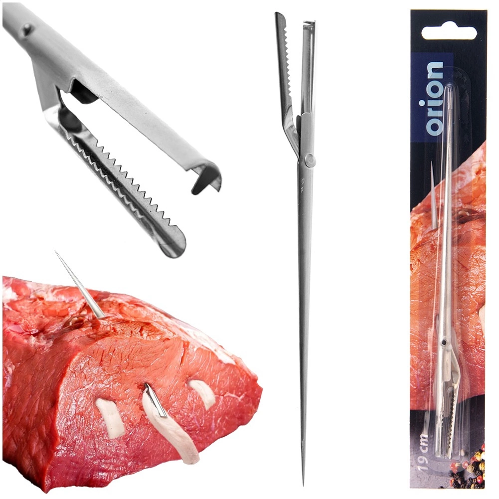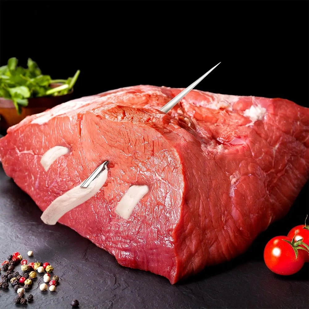 Acul lung și subțire, cu pătrundere lină, facilitează introducerea baconului sau legumelor adânc în carne și asigură distribuirea uniformă a ingredientelor.