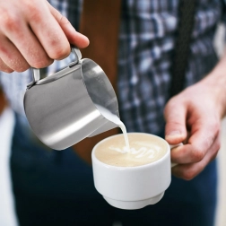 Ciocul profilat și mânerul solid asigură un flux lin al lichidului și marginea curată a ceștii – ideal pentru servirea laptelui și a sosurilor fine.