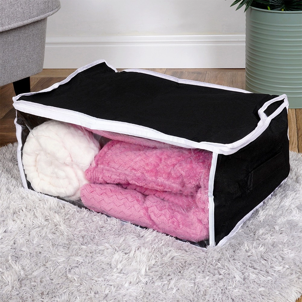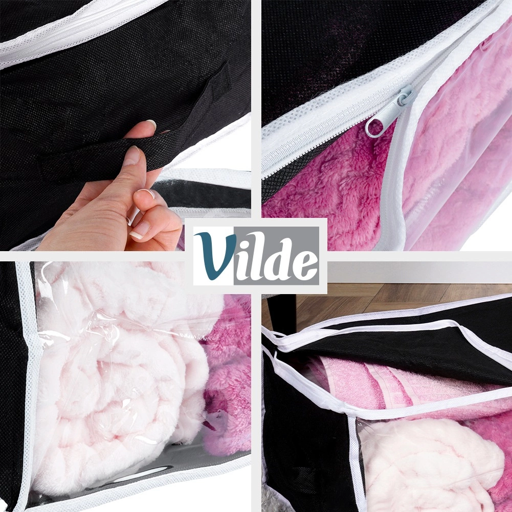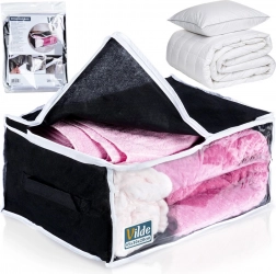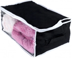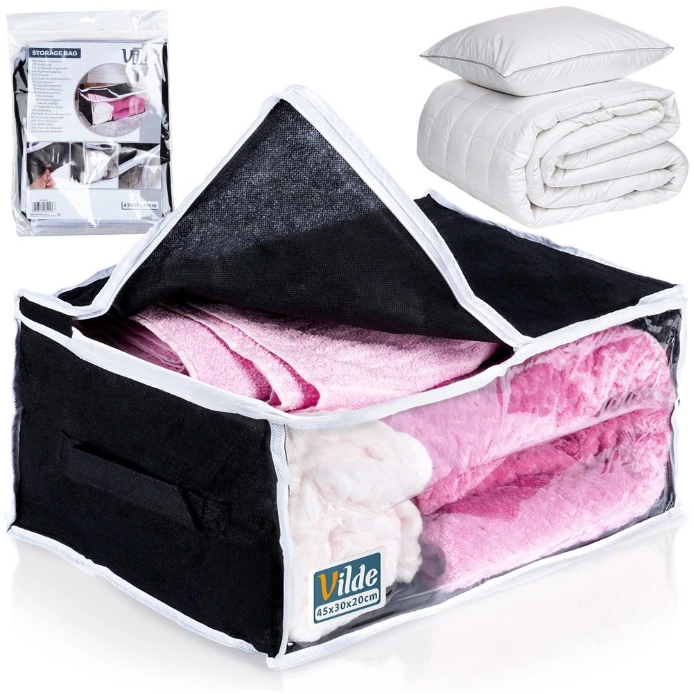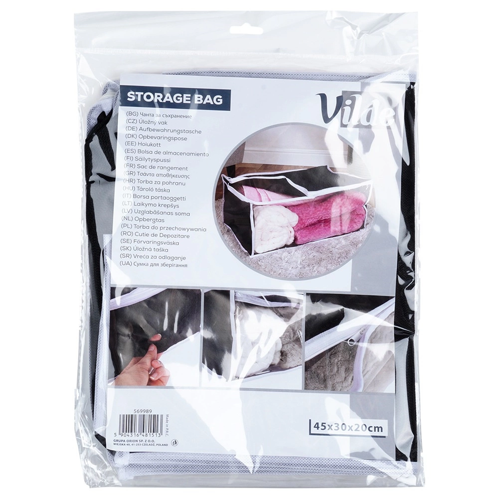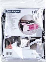 Acest sac de depozitare durabil, cu volum de 27 l și dimensiuni de 45 × 30 × 20 cm, este fabricat din țesătură de poliester rezistentă. Îți protejează în mod fiabil lenjeria și alte textile de factorii externi, menținând în același timp locuința ordonată și curată.