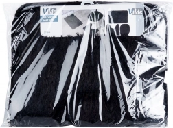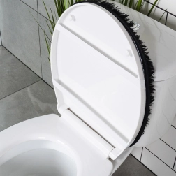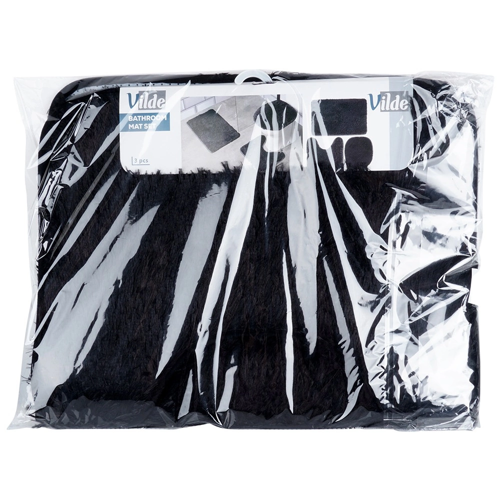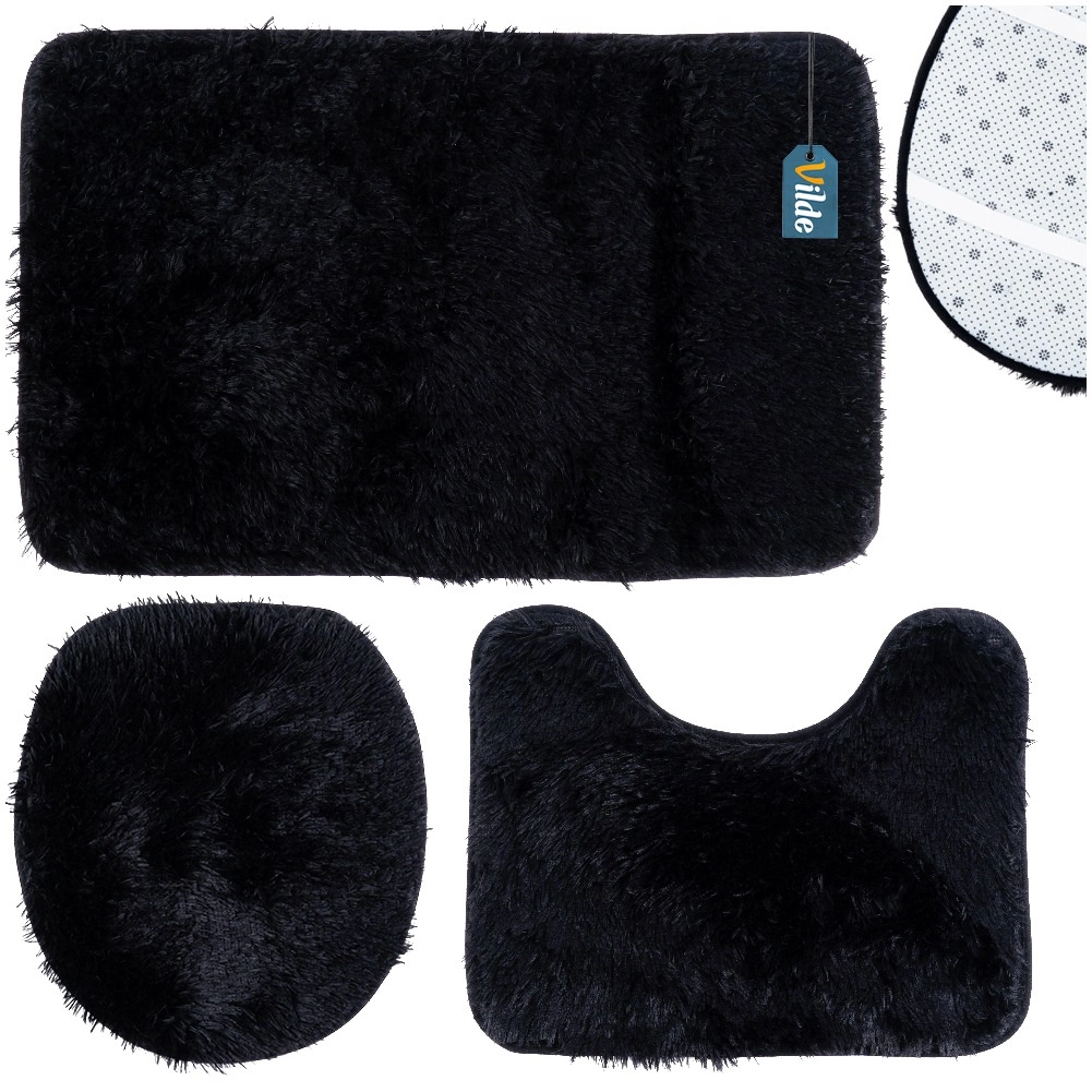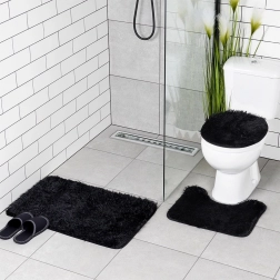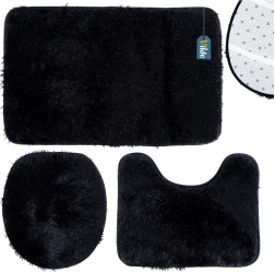 Setul include un covoraș dreptunghiular pentru cadă sau duș, covoraș cu decupaj în U pentru baza WC pentru un spațiu curat și confortabil în jurul toaletei și husă pentru capacul toaletei cu elastice pentru fixare sigură. Culoarea neagră minimalistă se potrivește oricărui interior și evidențiază designul băii.