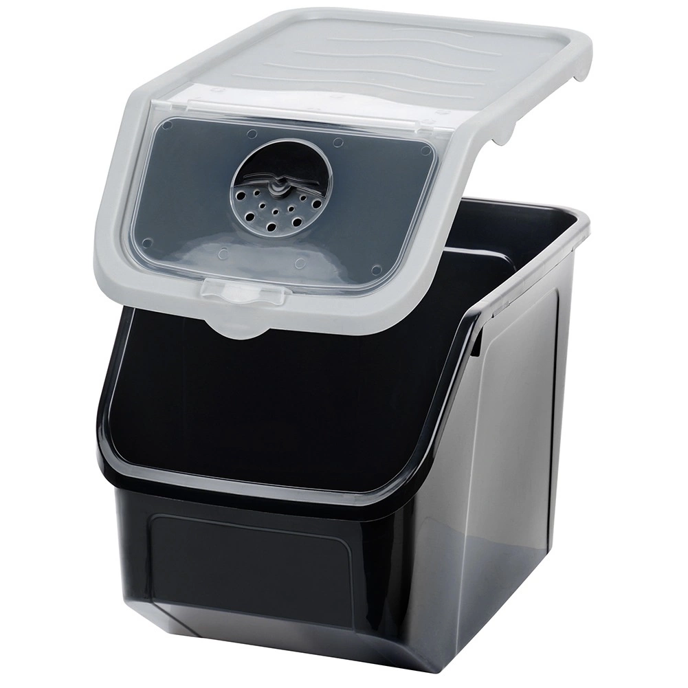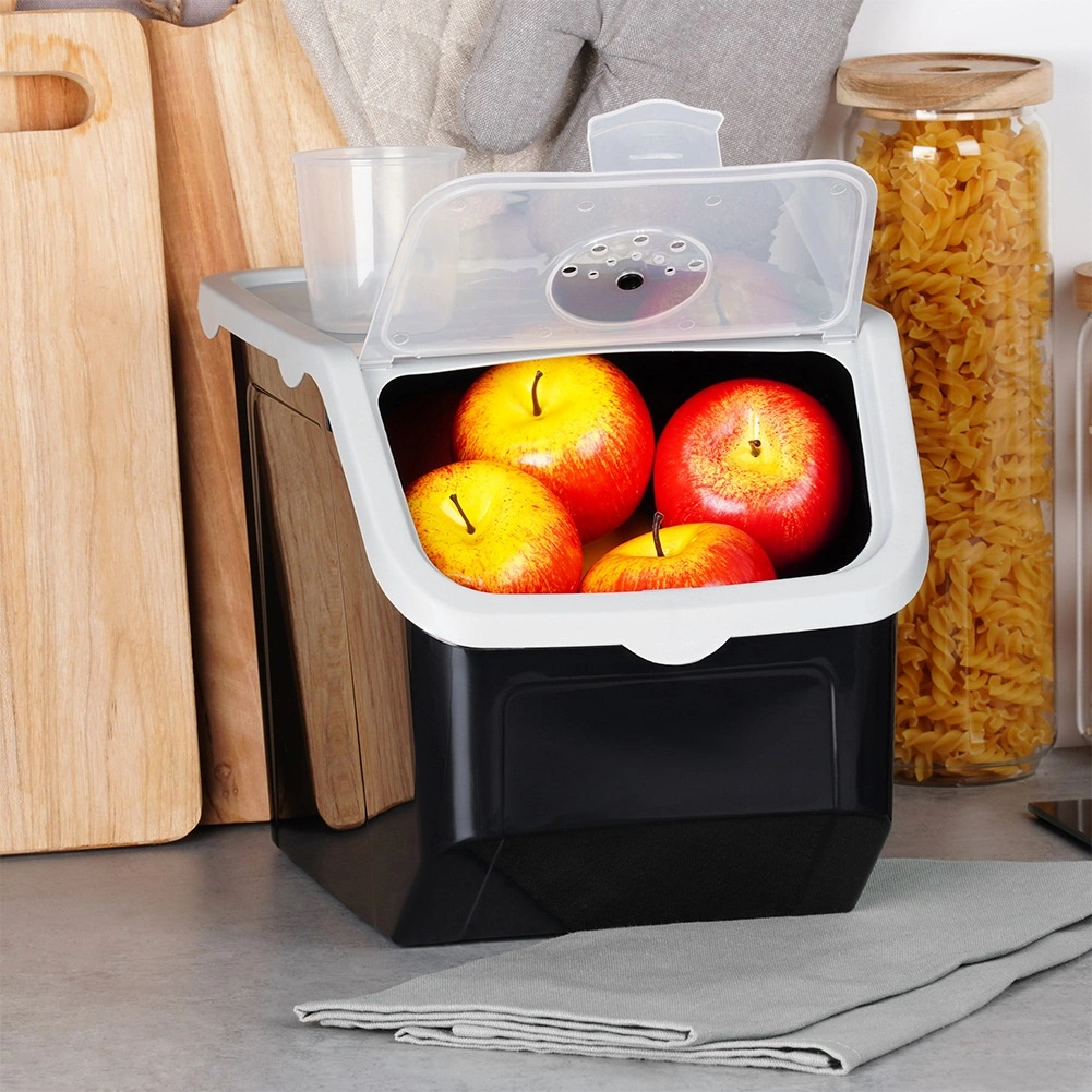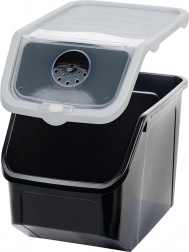 Păstrați ordinea în bucătărie și prospețimea alimentelor cu cutia spațioasă de 12 l. Datorită capakului rabatabil transparent verificați ușor conținutul și turnați sau prelevați simplu cantitatea dorită. Orificiile de aerisire reglabile ajută la menținerea unei circulații corecte a aerului, pentru ca fructele și legumele să-și păstreze prospețimea mai mult timp.