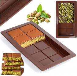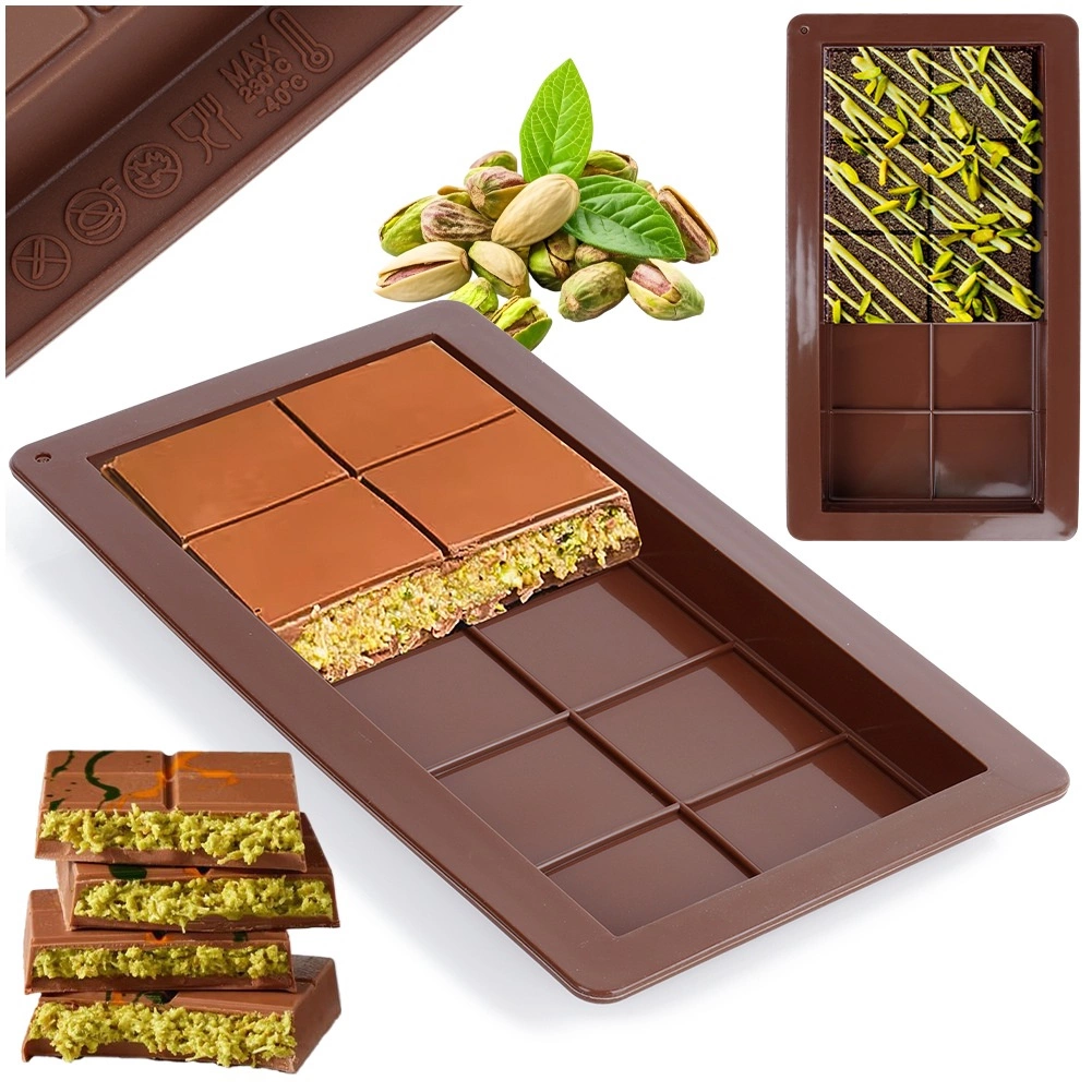 Această formă din silicon de calitate îți permite să pregătești tablete de ciocolată perfect conturate – de la clasicul lapte până la variante cu alune, fructe uscate sau condimente. Siliconul flexibil și antiaderent asigură forme curate și demulare fără probleme, fără a fi nevoie de ungere.