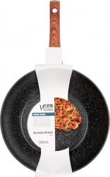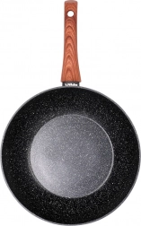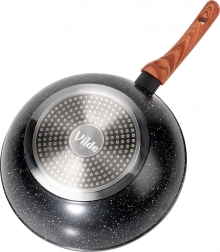 Construcția durabilă din aluminiu oferă distribuție rapidă și uniformă a căldurii, astfel încât gătești economic și cu rezultate excelente. Plăcutul mâner soft touch cu aspect de lemn nu se încălzește, se potrivește perfect în mână și are orificiu pentru agățare. Wokul este potrivit pentru toate tipurile de plite, inclusiv inducție, și poate fi spălat în mașina de spălat vase.