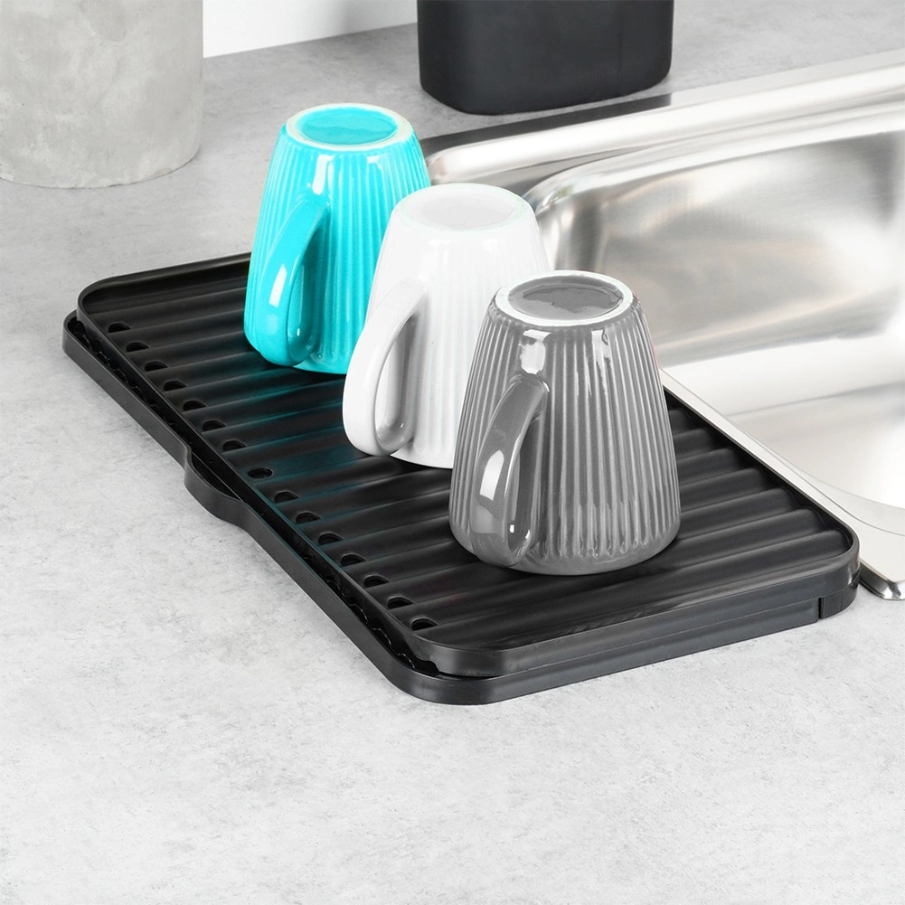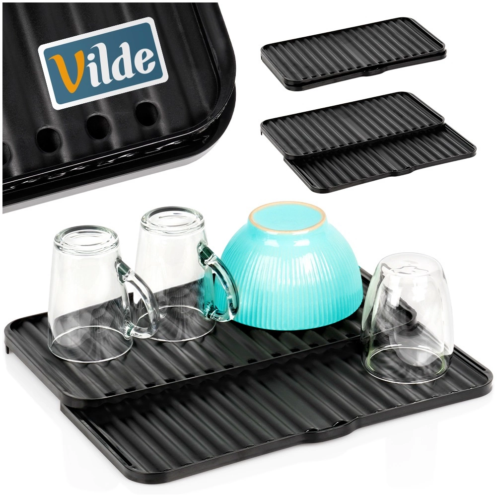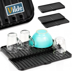 Două părți glisante măresc suprafața de uscare de la 20,5 la 33 cm. Încap mai multe căni, pahare și boluri fără a aglomera blatul de bucătărie.