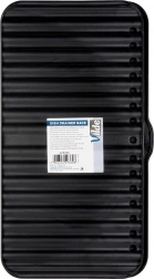 Partea superioară are orificii de drenaj, iar tava inferioară are gura de scurgere pentru evacuarea comodă a apei în exces într-o singură direcție. Construcția durabilă din plastic de calitate se curăță ușor și, în eleganta culoare neagră, se potrivește perfect în orice bucătărie.