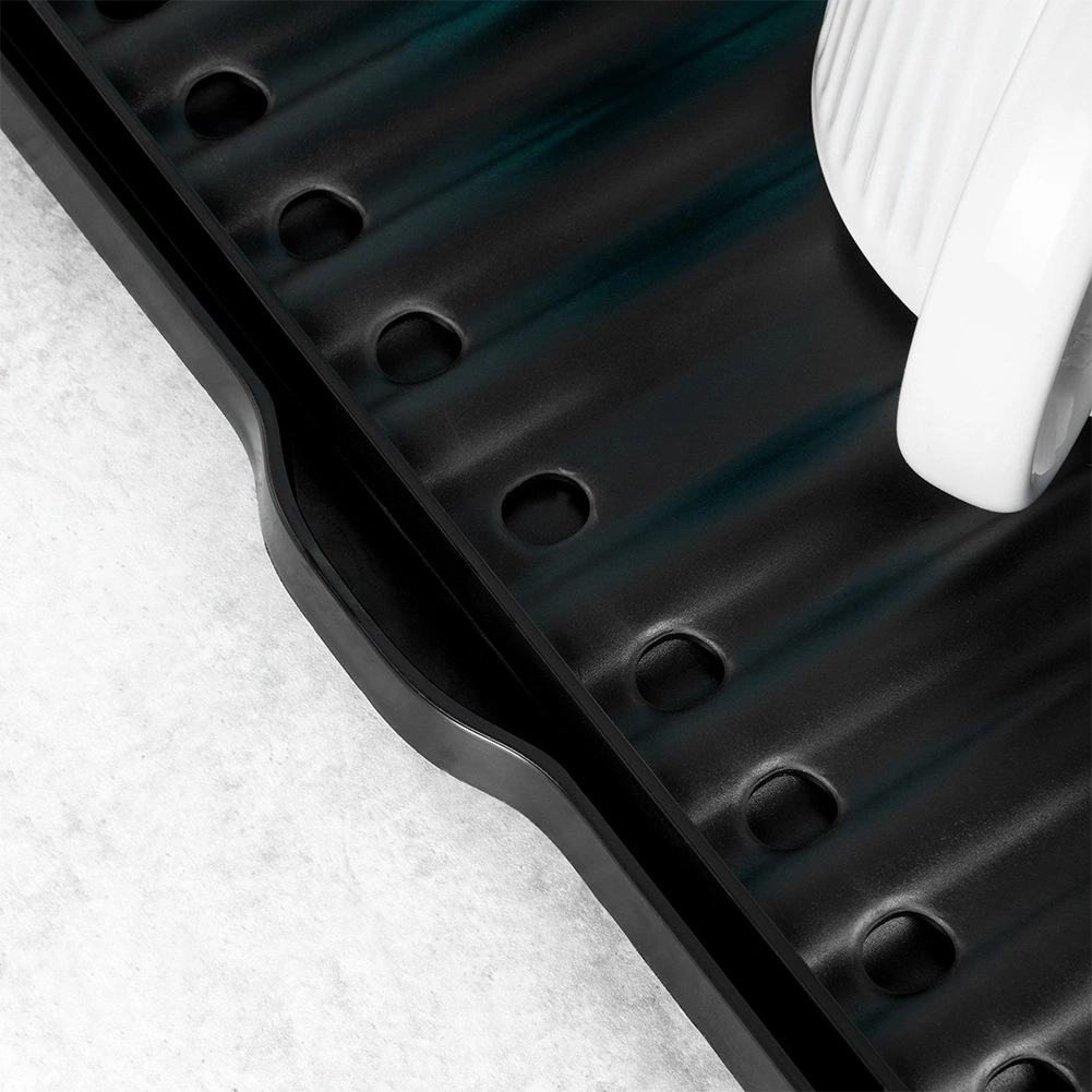 Suprafața striată și orificiile de drenaj accelerează uscarea și împiedică acumularea apei sub vase.