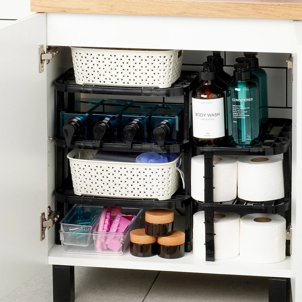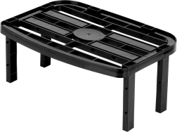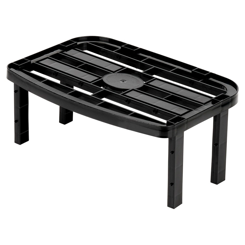Construcția robustă din plastic, de culoare neagră, este stabilă, ușor de întreținut și, datorită celor două seturi de picioare (13 cm și 10,5 cm), puteți alege înălțimea finală de 14,5 cm sau 11,5 cm. Raftul este potrivit pentru bucătărie, cămară, baie și birou și poate fi stivuit pentru a crea mai multe niveluri de depozitare.