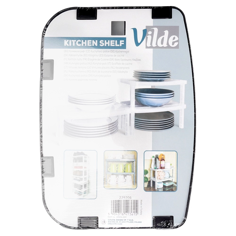 Simplificați organizarea bucătăriei cu un raft universal care împarte eficient spațiul interior al dulapului în două niveluri. Astfel obțineți o depozitare mai ordonată a farfuriilor, cănilor, bolurilor sau condimentelor și valorificați pe deplin înălțimea rafturilor și a blatului.