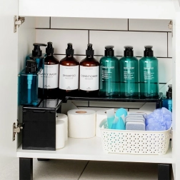 - Maximizarea spațiului de depozitare – împarte raftul/blatul în două niveluri.