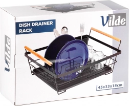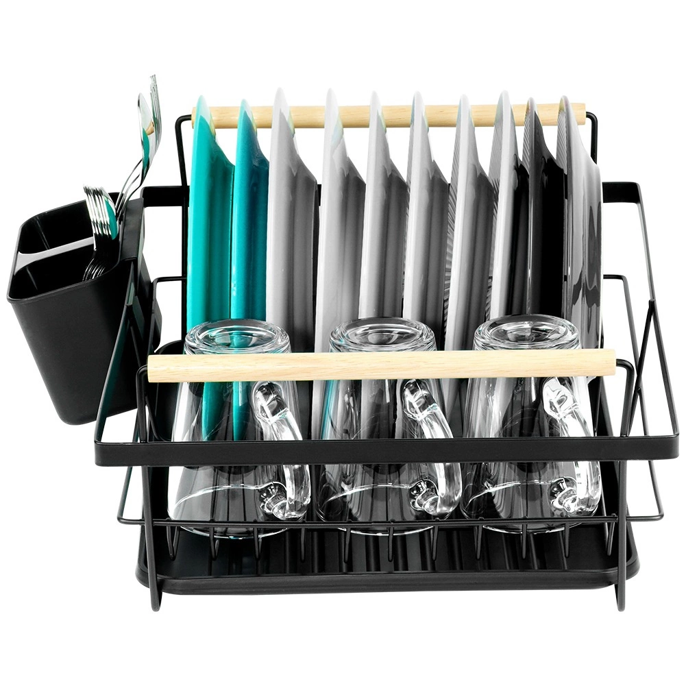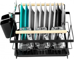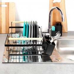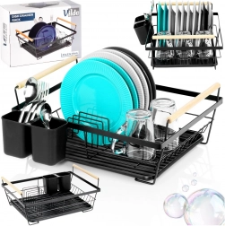 Include un coș detașabil pentru tacâmuri cu două compartimente, care poate fi plasat în interiorul sau în exteriorul cadrului pentru flexibilitate maximă. Suportul poate găzdui până la 10 farfurii și alte vase, este ușor de curățat și este realizat din materiale de calitate, rezistente.