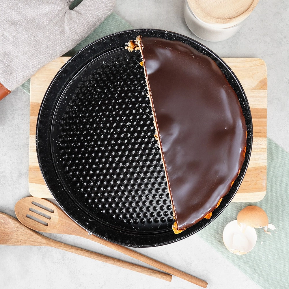 Baza texturată cu strat granitic contribuie la coacerea uniformă și la eliberarea facilă a preparatelor coapte.