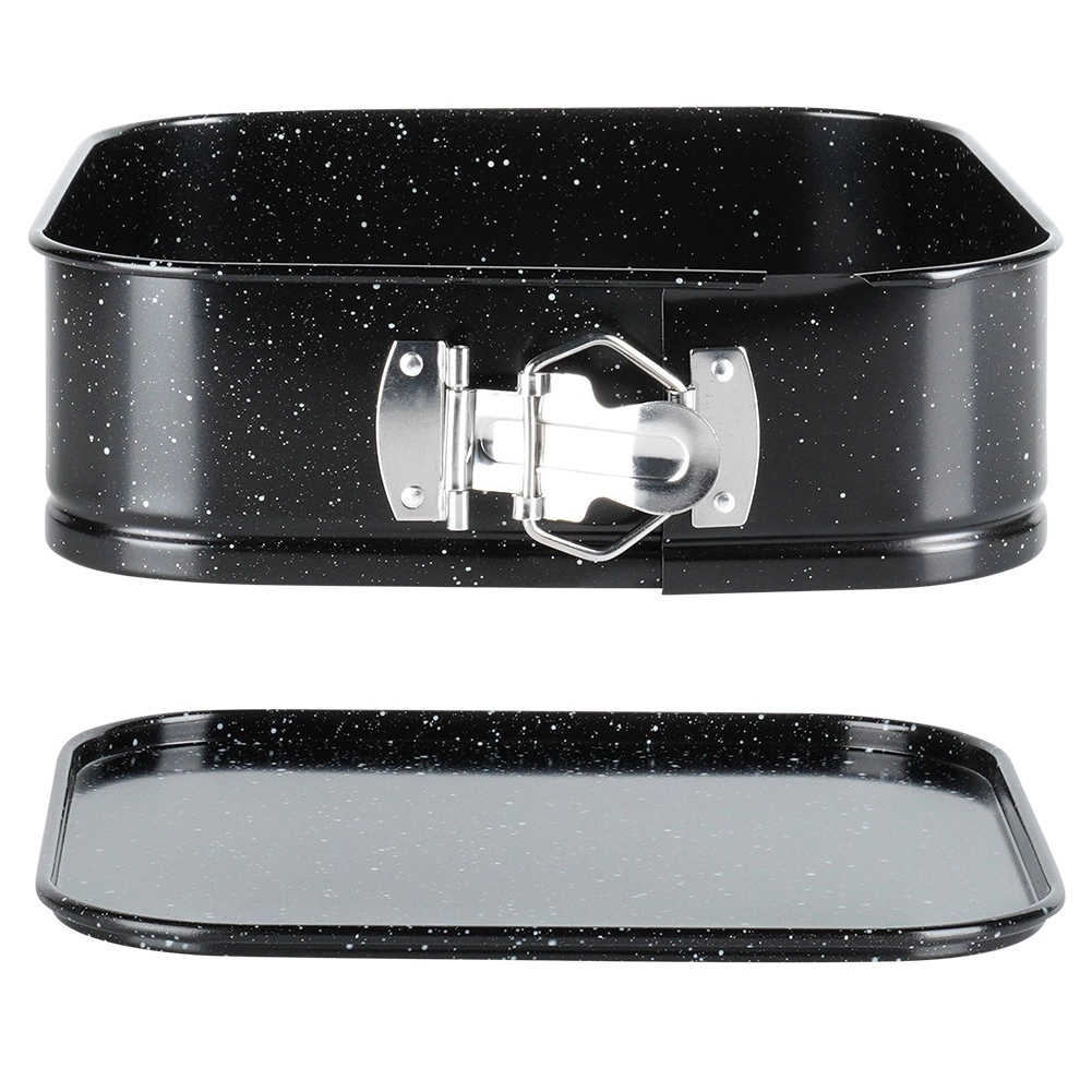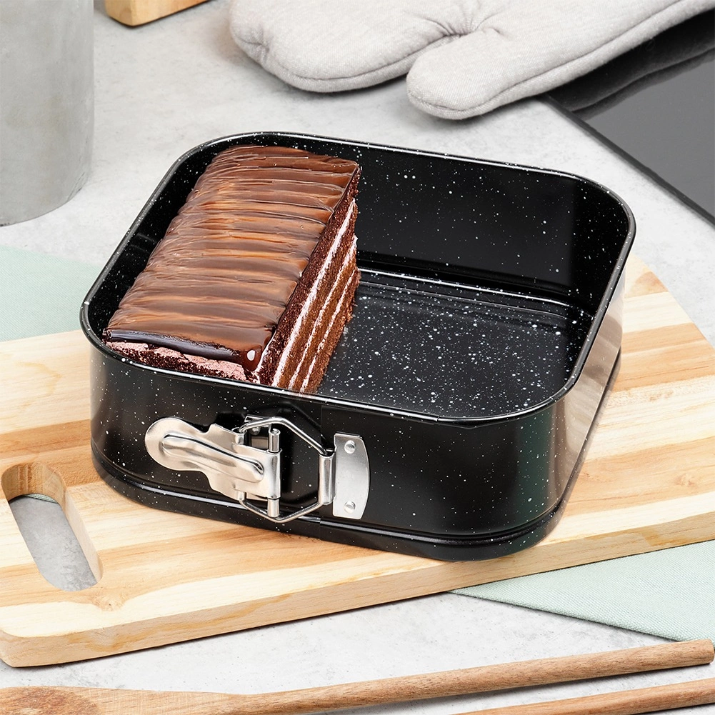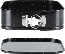 Formă de copt pătrată practică, cu margine detașabilă și bază amovibilă pentru scoaterea ușoară a deserturilor. Fabricată din oțel durabil cu acoperire antiaderentă tip granit pentru coacere uniformă, minimă lipire și curățare facilă. Ideală pentru cheesecake, torturi, guguluf și preparate gratinate.