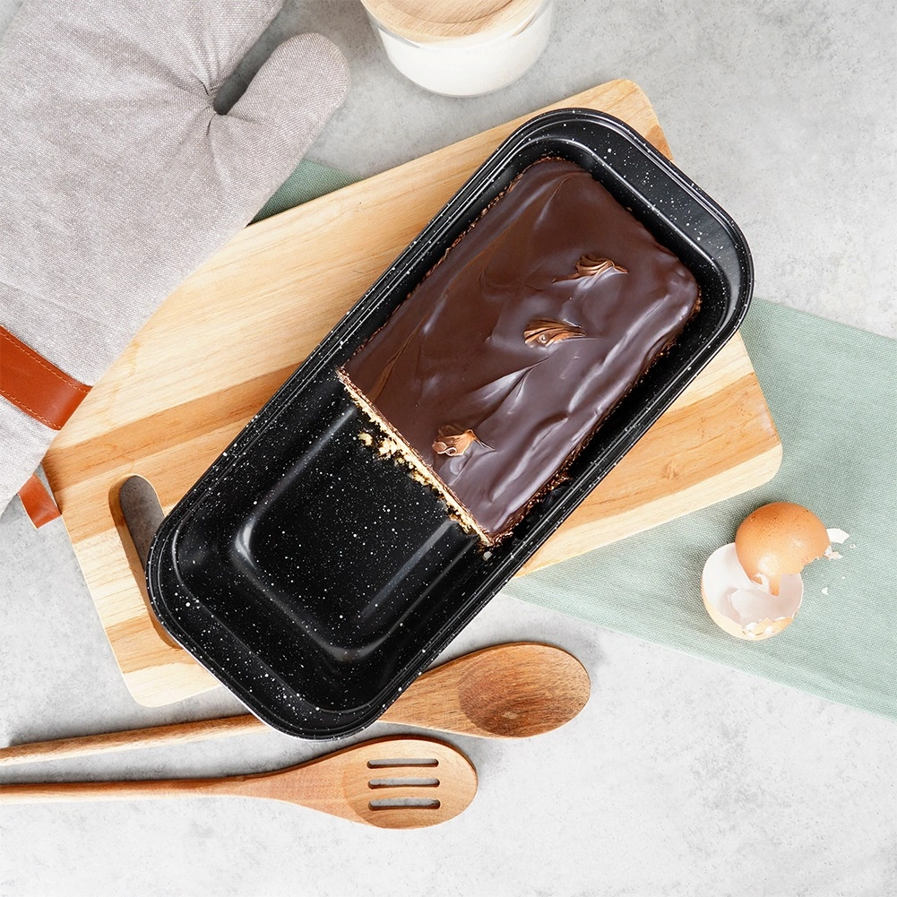 Forma dreptunghiulară cu colțuri rotunjite menține aluatul compact și facilitează scoaterea pâinii sau a pateurilor fără deteriorare.