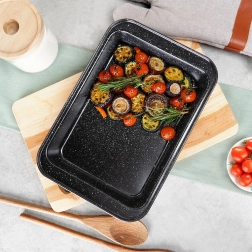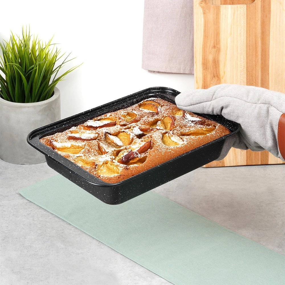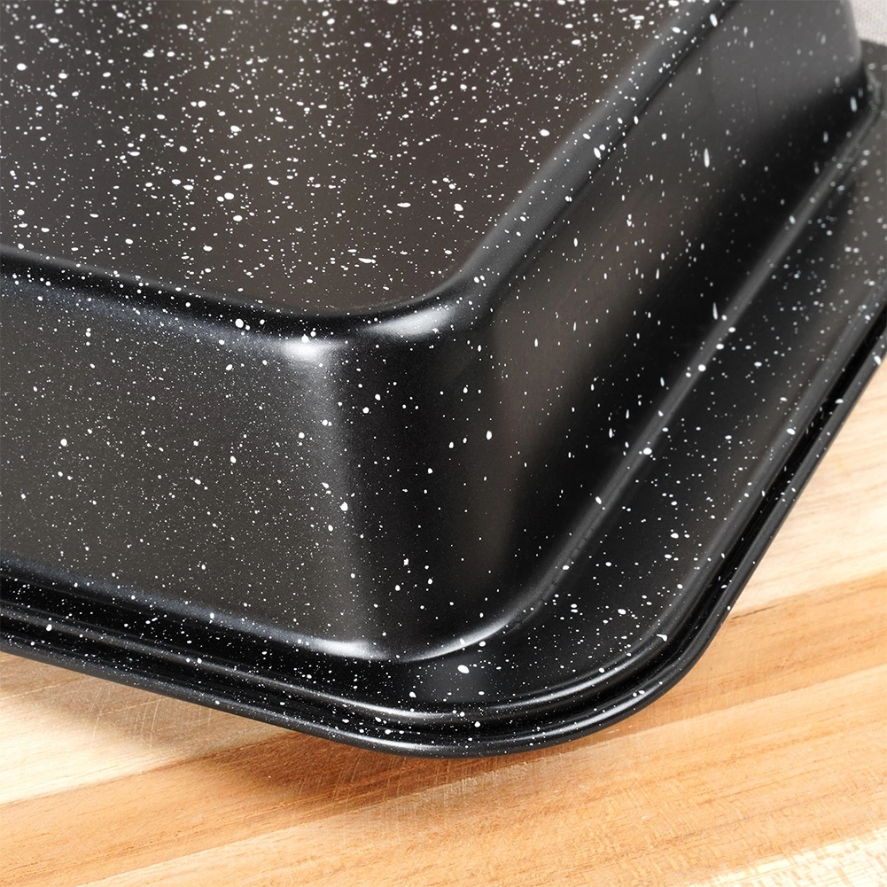 Această formă de copt din granit îmbină oțelul carbon robust cu un finisaj durabil din granit pentru rezultate perfecte la fiecare coacere. Suprafețea antiaderentă minimizează nevoia de grăsime, previne arderea și face curățarea mult mai ușoară.