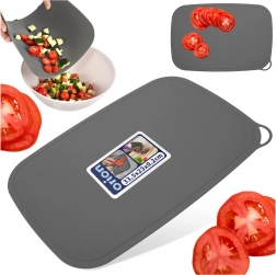 Păstrează blatul curat și pregătit pentru gătit cu suportul de tăiere elastic ELA. Materialul subțire și totodată rezistent nu alunecă în timpul tăierii, iar după preparare îl pliezi ușor în formă de jgheab pentru transfer curat al alimentelor. Designul minimalist în gri se potrivește perfect în orice bucătărie.