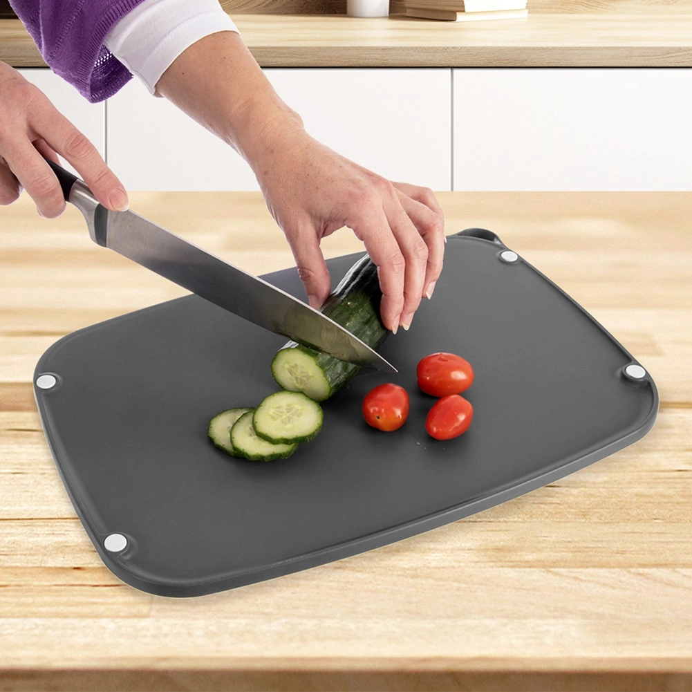 Tocatorul este confecționat din plastic rezistent, sigur pentru contactul cu alimentele, într-o culoare gri elegantă. Se întreține ușor – poate fi spălat în mașina de spălat vase și rezistă la temperaturi de până la +95 °C. Orificiul practic facilitează agățarea și depozitarea economică.