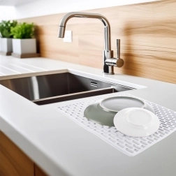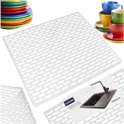 Dimensiunea universală de 33 × 28 cm și culoarea neutră albă se potrivesc ușor cu majoritatea chiuvetelor și stilurilor de bucătărie. Suportul este rezistent la apă, se curăță ușor, iar textura antiderapantă sporește siguranța în timpul spălării vaselor.