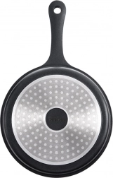 Tigaie compactă din granit GRANDE, cu diametrul de 16 cm, pentru gătit zilnic. Datorită stratului antiaderent Pfluon Granit gătești cu minimum de grăsime, cu distribuție uniformă a căldurii și prăjire rapidă și economică. Este compatibilă cu toate tipurile de plite, inclusiv inducție, poate fi folosită la cuptor și spălată în mașina de spălat vase, având o construcție robustă, monobloc, din aluminiu cu prindere confortabilă.