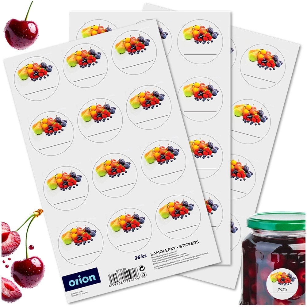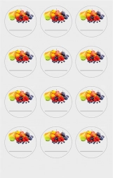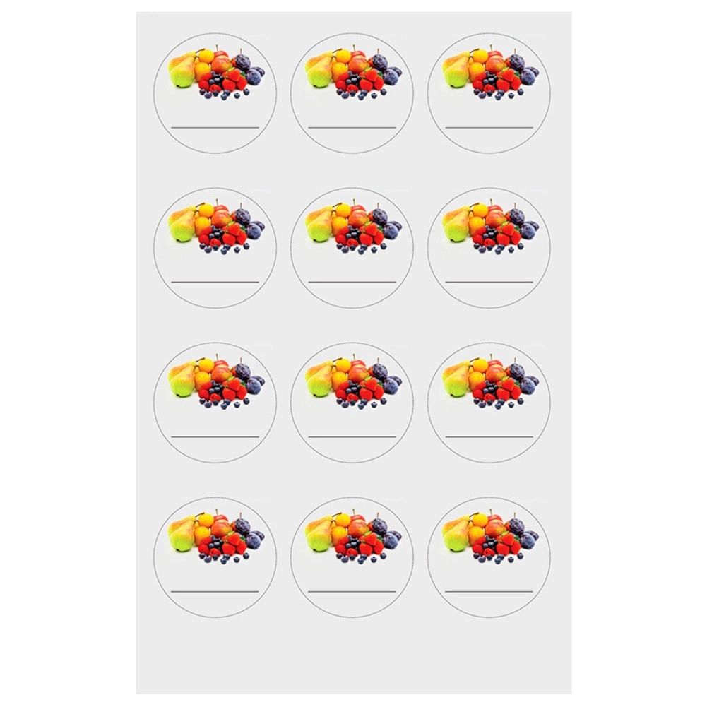 Păstrați ordinea în cămară și în dulapurile de bucătărie cu etichetele stilate cu motiv fructat. Autocolantele rotunde cu diametrul de 3,5 cm se lipesc ușor pe borcane, sticle și recipiente pentru condimente, transformându-le în provizii clar etichetate. Hârtia laminată asigură o rezistență mai bună la abraziune și o durată de viață mai lungă.