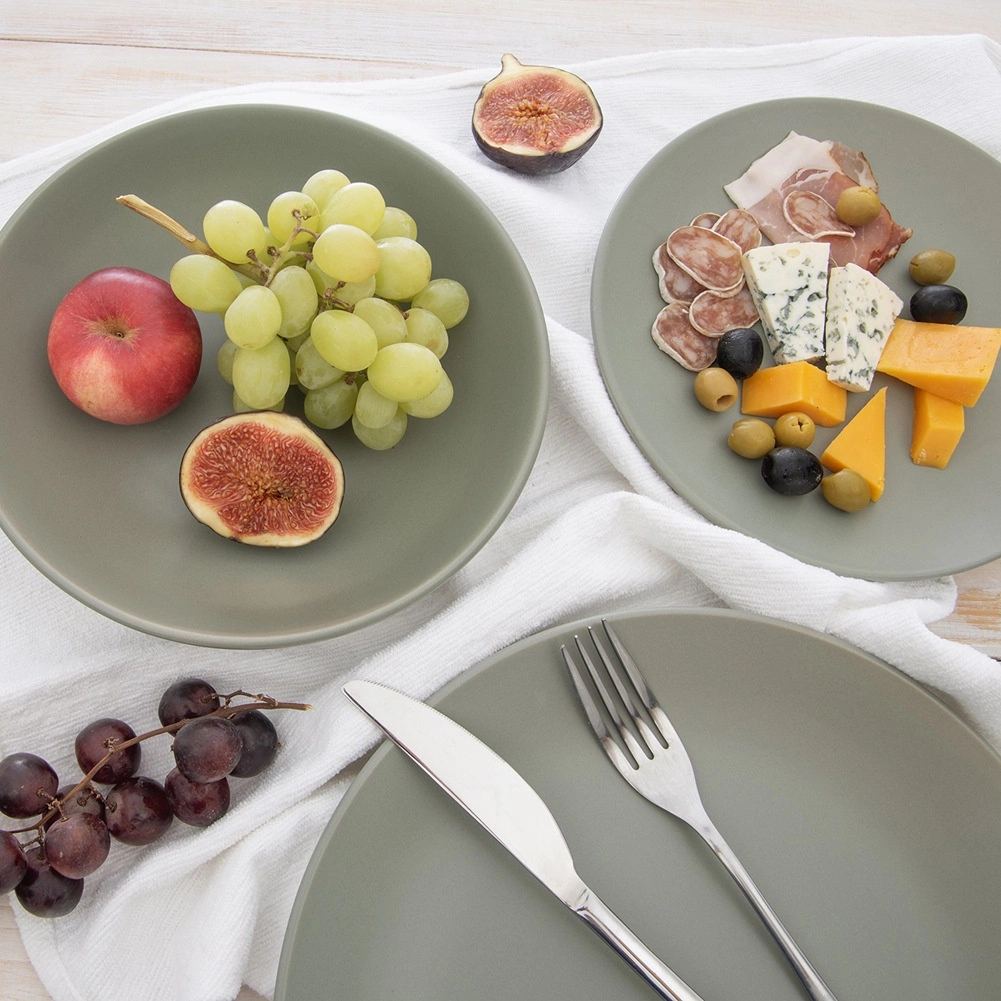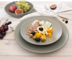 Farfuria universală din ceramică, 27 cm, cu suprafață mată în nuanță verde măsliniu, este potrivită pentru feluri principale, salate, deserturi și pentru servirea gustărilor sărate sau dulci. Datorită execuției de calitate este rezistentă și durabilă, și se combină ușor cu alte piese de veselă.