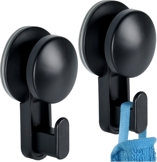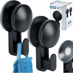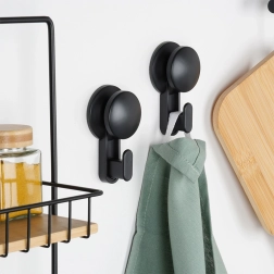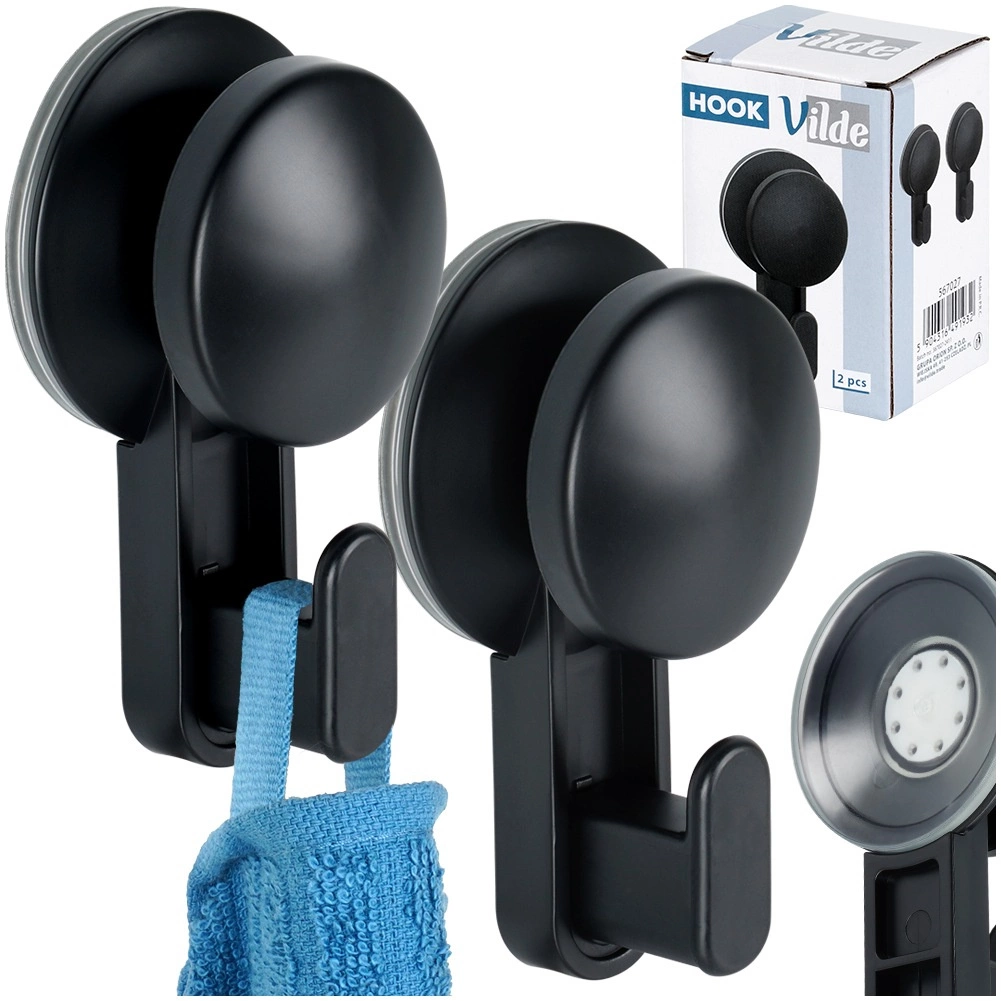 Descoperiți o soluție rapidă și curată pentru organizarea casei. Cârligele cu ventuză în elegantul negru țin în siguranță prosoape, șervete, bureți de baie, șorțuri și haine ușoare – fără nicio găurire. Datorită ventuzei late, cu diametrul de 5,5 cm, aderă excelent pe suprafețe netede și neporoase.