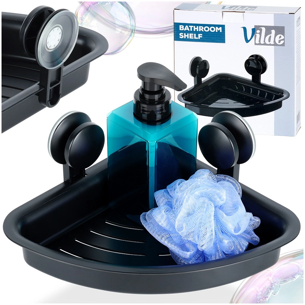 Această etajeră de colț pentru duș este o soluție excelentă pentru orice baie. Datorită perechii de ventuze puternice, o fixați în câteva clipe fără unelte și fără găurire, protejând astfel faianța și sticla de deteriorări. Culoarea negru mat are un aspect elegant și se potrivește ușor cu accesoriile moderne pentru baie.