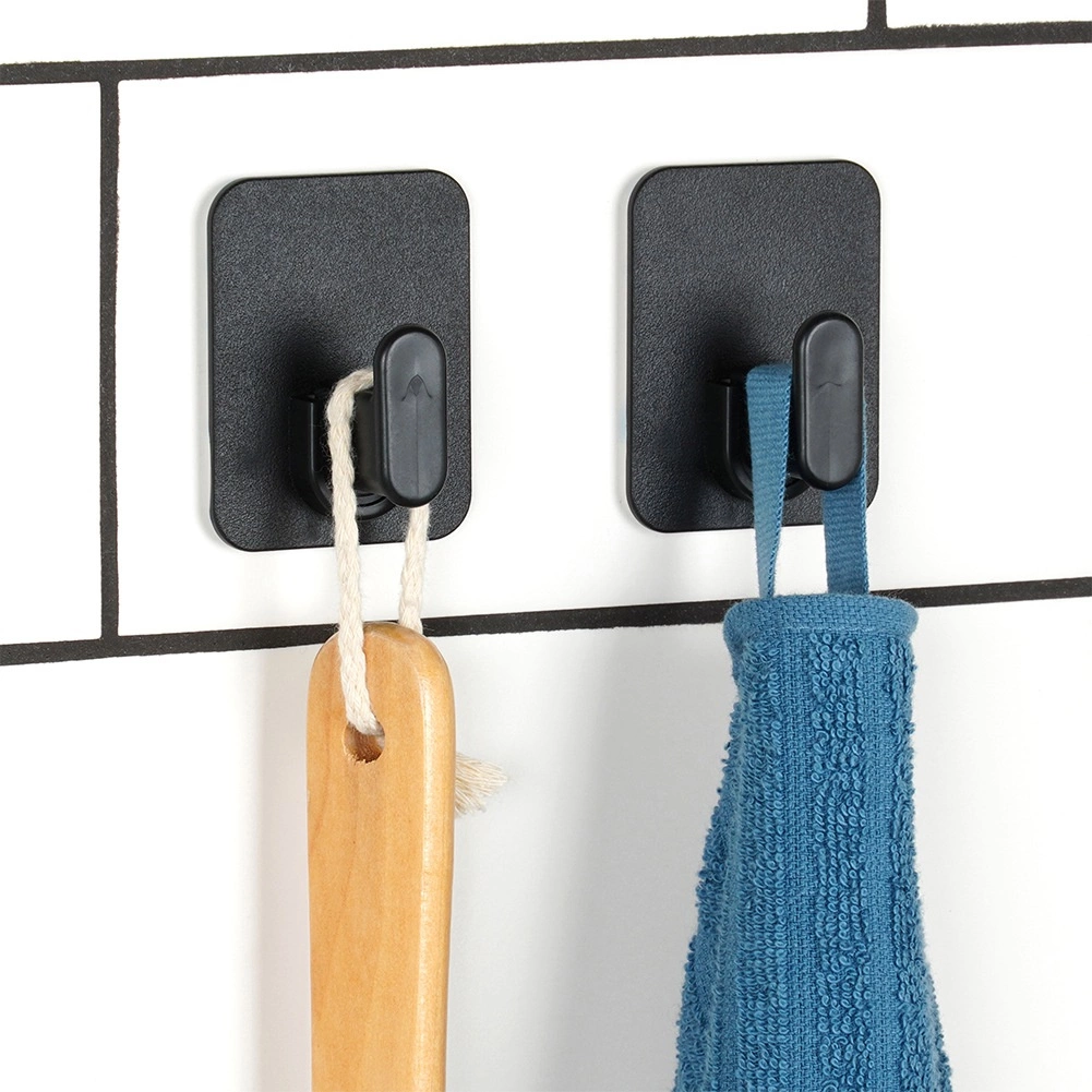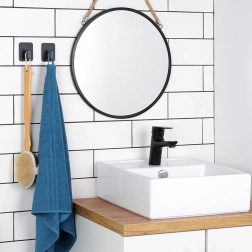 Cârligele minimaliste cu bază dreptunghiulară oferă o soluție fiabilă pentru agățarea accesoriilor de zi cu zi. Construcția rezistentă din plastic ușor, de culoare neagră, se potrivește perfect în interioarele moderne și, datorită spumei autoadezive 3M, asigură aderență puternică pe sticlă, oglindă, glazură și mobilier.