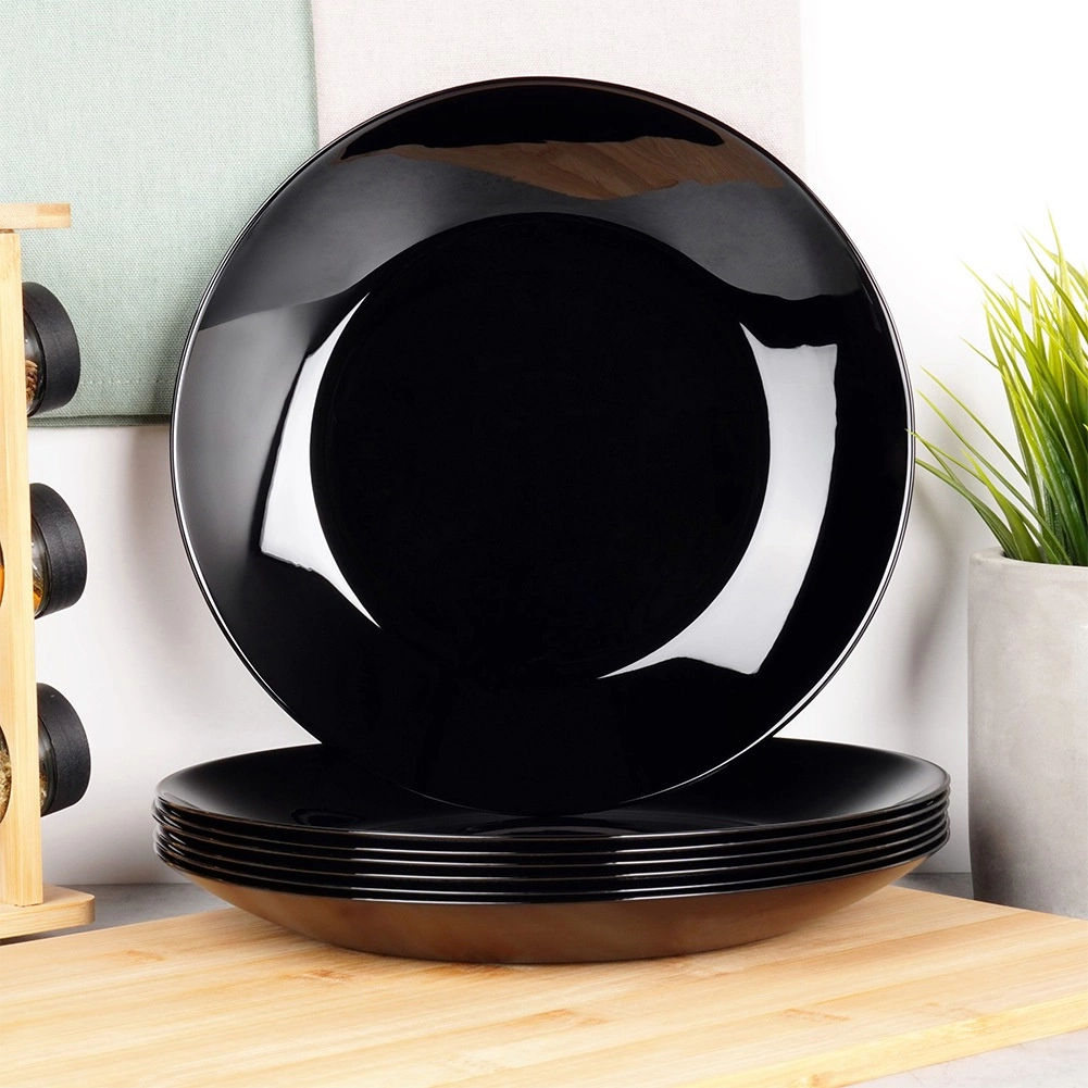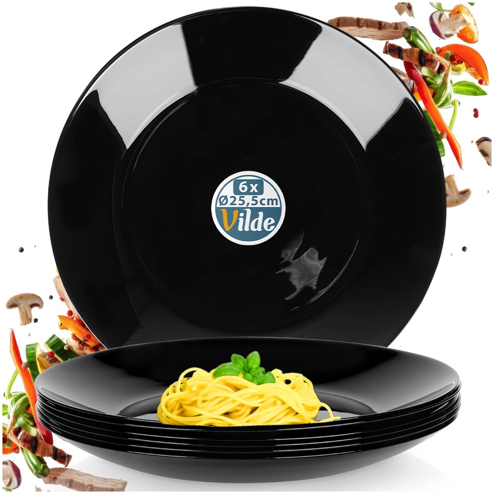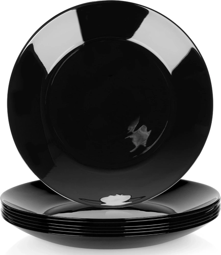 Set de 6 farfurii plate universale din sticlă opal de calitate, cu un luciu elegant negru. Datorită aspectului atemporal și execuției durabile, completează perfect vesela dvs. – de la prânzul zilnic până la masa festivă. Materialul amintește de porțelan, dar este practic de întreținut și rezistent pe termen lung.