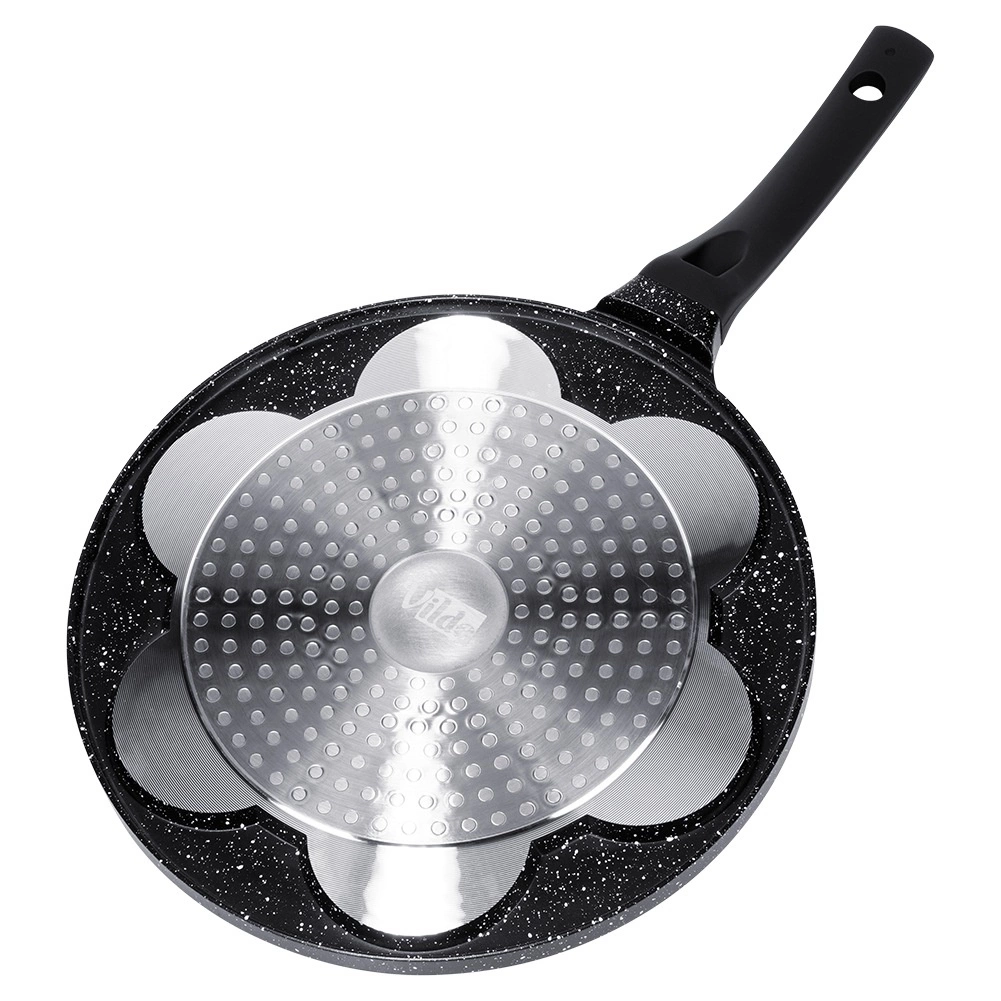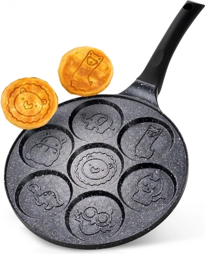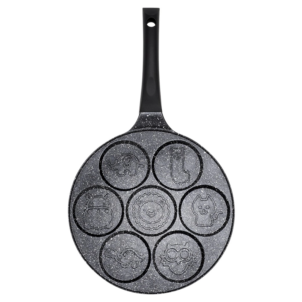 Bucurați-vă de un mic dejun rapid și jucăuș. Tigaia din granit BLACK LINE combină un corp ușor din aluminiu cu un strat antiaderent durabil, astfel încât ouăle ochiuri, clătitele groase și mini-pancakes se desprind ușor din forme, iar curățarea tigăii este comodă. Reliefurile cu animale de pe fundul formelor îi vor încânta pe copii și adulți și vor transforma fiecare dimineață într-un mic ritual.