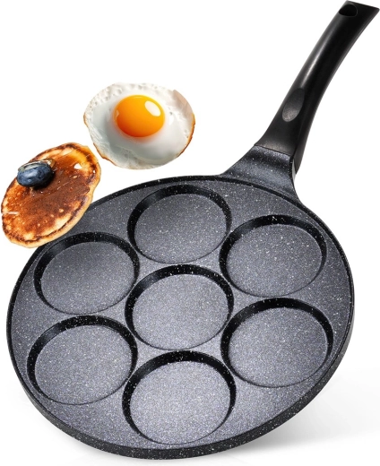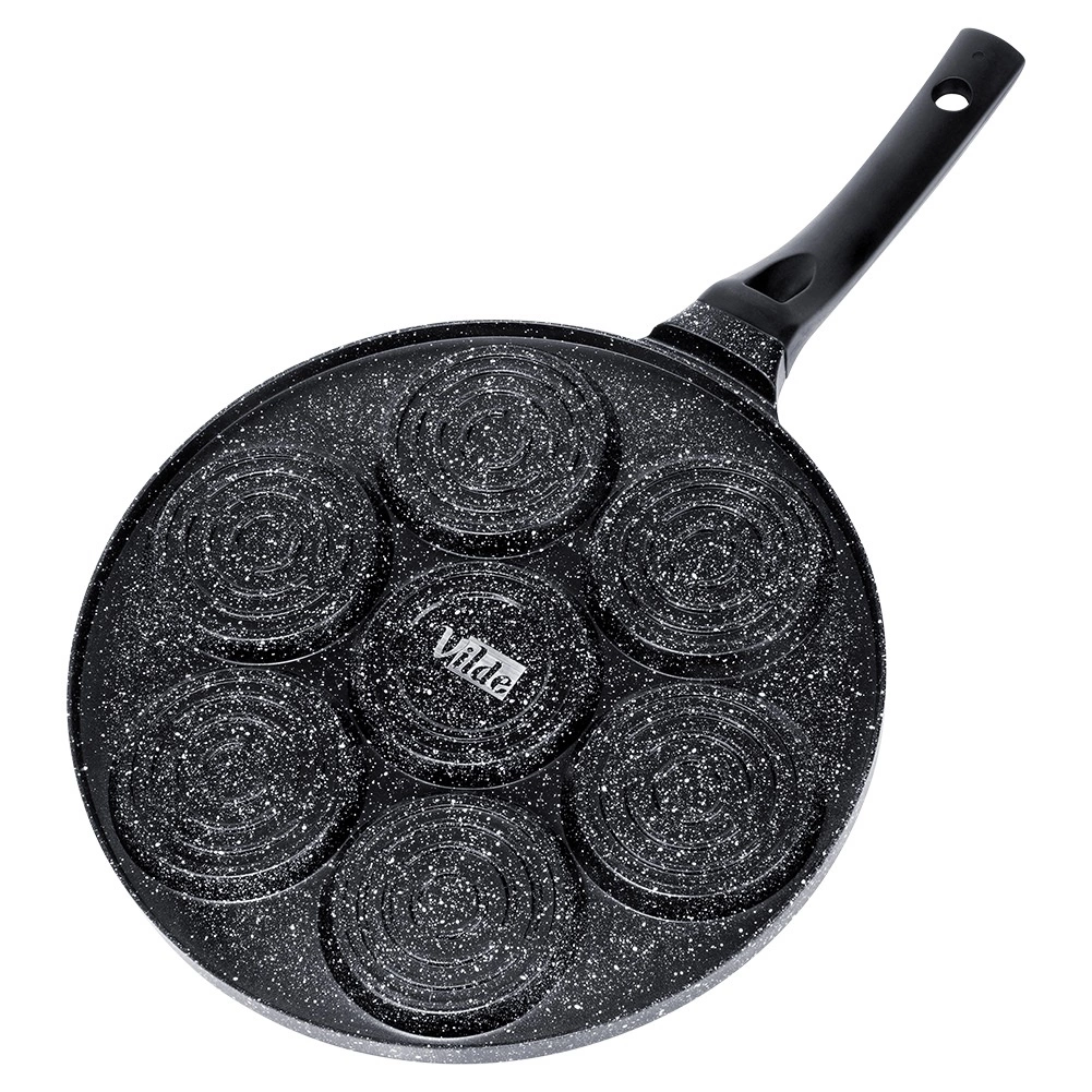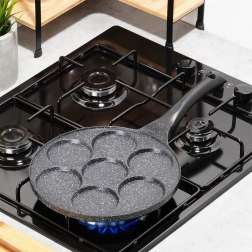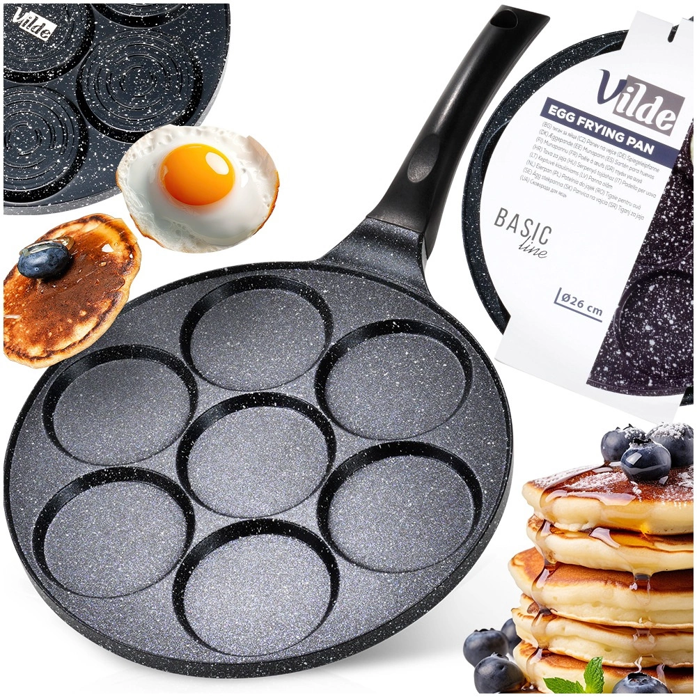 Bucurați-vă de mic dejunuri rapide și simple cu o tigaie care păstrează porțiile în formă perfectă. Șapte celule separate cu diametrul de 8 cm asigură coacere uniformă și porții frumos rotunjite – de la ochiuri până la pancakes pufoase. Datorită tratamentului de suprafață antiaderent din granit, preparatele nu se lipesc și aveți nevoie de un minim de ulei.