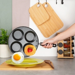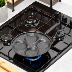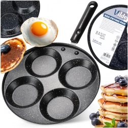 Această tigaie din granit cu 4 forme rotunde este ideală pentru prepararea ouălor, a clătitelor mici și a mini-pancakes în formă perfect regulată. Economisește timp și energie: materialul conduce excelent căldura și asigură prăjire uniformă fără ardere.