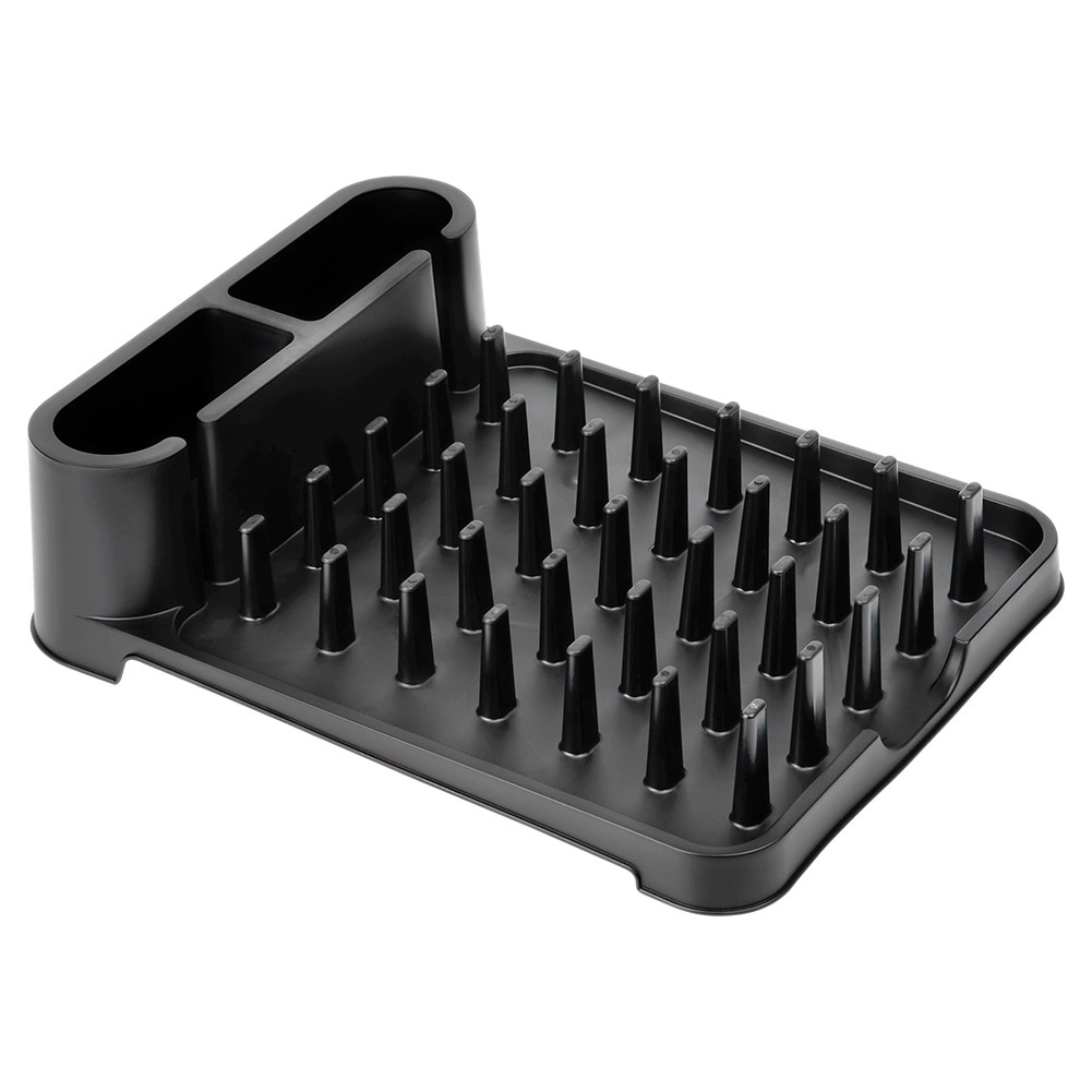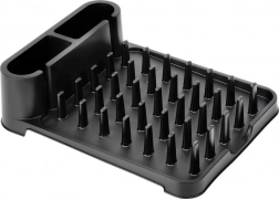 Păstrați bucătăria în perfectă ordine cu scurgătorul compact Vilde. Țepii înalți stabilizează farfuriile în siguranță, în timp ce spațiul dedicat oferă loc pentru pahare și căni. Organizatorul separat pentru tacâmuri și ustensile mici asigură o uscare rapidă și igienică.